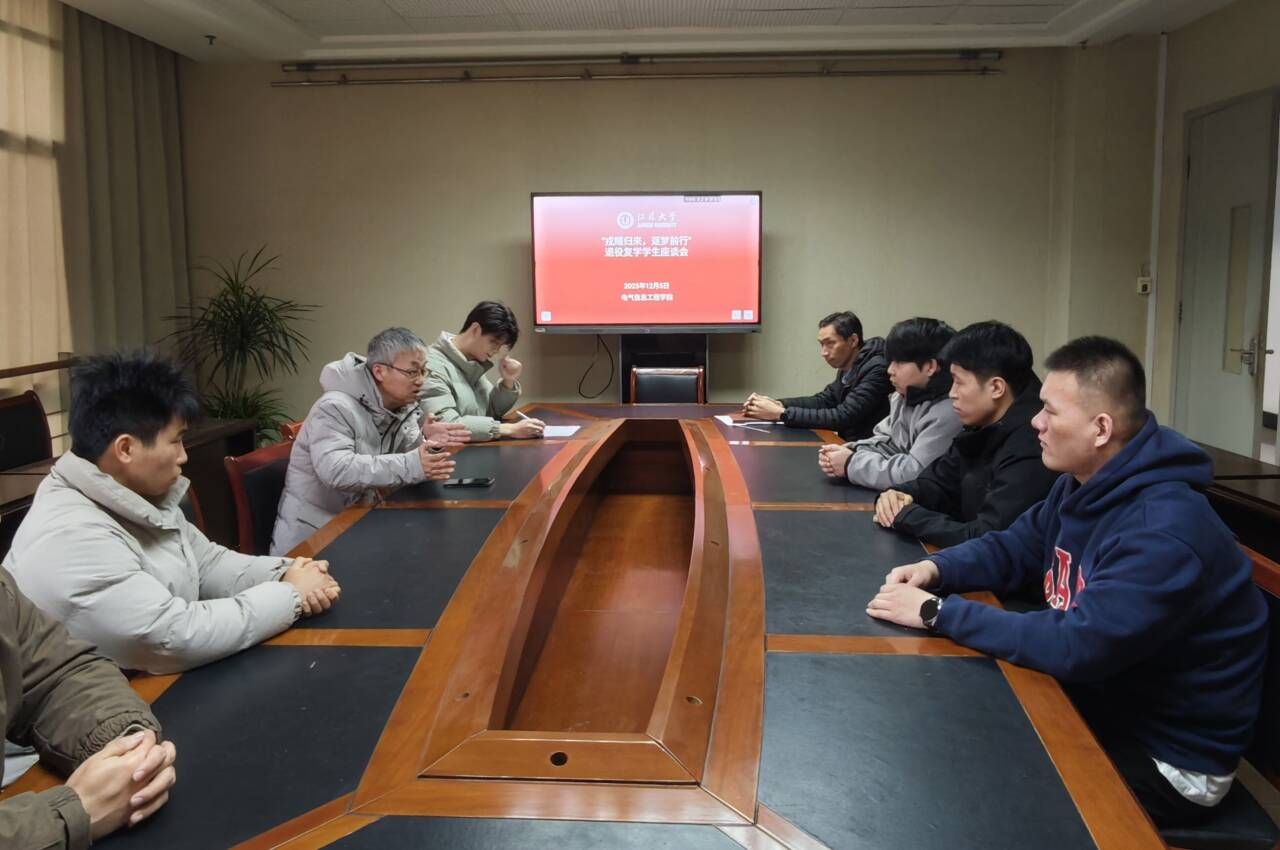 为弘扬军人精神,助力退役士兵大学生更好地融入校园生活,12月5日,电气学院退役复学学生座谈会于电气楼313会议室召开。电气学院党委副书记叶涛,...