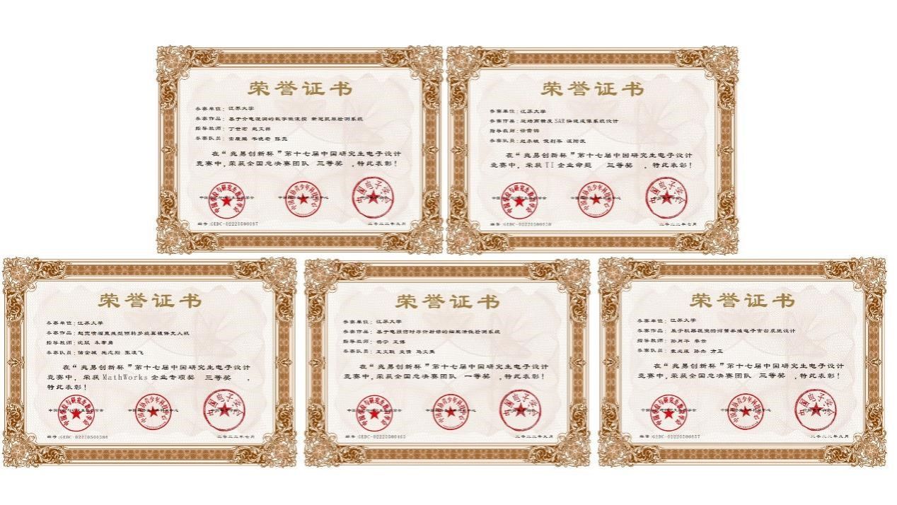 Recently, the 17th National Finals of China Postgraduate Electronic Design Competition, jointly sponsored by the China Electronics Society, the China Association for Academic Degrees and Graduate Education and other organizations, came to a successful conclusion. The award ceremony for the National Finals of this seminar was undertaken by the People's Government of Rugao City, Jiangsu Province. Jiangsu University won one first prize and four third prizes for its participating projects, EIE won the Excellent Organization Award, and Yang Ning won the Excellent Instructor.