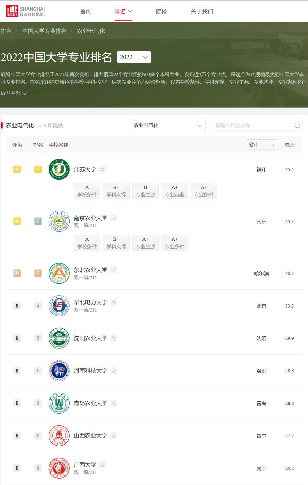On June 18, Soft Science, a professional evaluation institution of higher education, officially released the 2022 "Ranking of Soft Science in Chinese Universities", and the agricultural electrification major of the EIE ranked A+and the first in China. In recent years, the major of agricultural electrification has thoroughly implemented the implementation of the "095 Project" and the construction of a demonstration school for the comprehensive reform of "three all-around education", actively responded to the implementation of the "New Agricultural Science and New Engineering Integration Construction Program of Jiangsu University", fully improved the talent training program of agricultural electrification, deepened the reform of education and teaching, compiled textbooks for agricultural related majors, and worked hard to create a core professional curriculum group that meets the goal of professional construction, It has effectively supported the demand for talent training of agricultural electrification, and has achieved a series of fruitful construction results. In 2019, the agricultural electrification specialty was selected into the first batch of national first-class undergraduate specialty construction sites (the only one in China) and Jiangsu brand specialty (Phase II) construction projects; In 2020, it will be selected as the "three integrity education" demonstration major of the university, and will pass the acceptance in 2021; In 2021, the Party Branch of Agricultural Electrification and Automation won the title of Advanced Grassroots Party Organization of Jiangsu University; In 2022, the Teaching and Working Party Branch of the Department of Agricultural Electrification was selected as one of the first batch of provincial party building model branch cultivation and founding units. In the future, the major of agricultural electrification will further unify its thinking and cohesion, strengthen the foundation of morality, cultivate people, and cherish the responsibility of strengthening agriculture and revitalizing agriculture. It will continue to carry forward the fine tradition and characteristic advantages of the school of "agriculture in industry, and agriculture in industry", cultivate more new agricultural electrification professionals who "know agriculture, love agriculture, and serve agriculture", and make greater contributions to the establishment of the school's "double first-class" and the construction of high-level research universities.