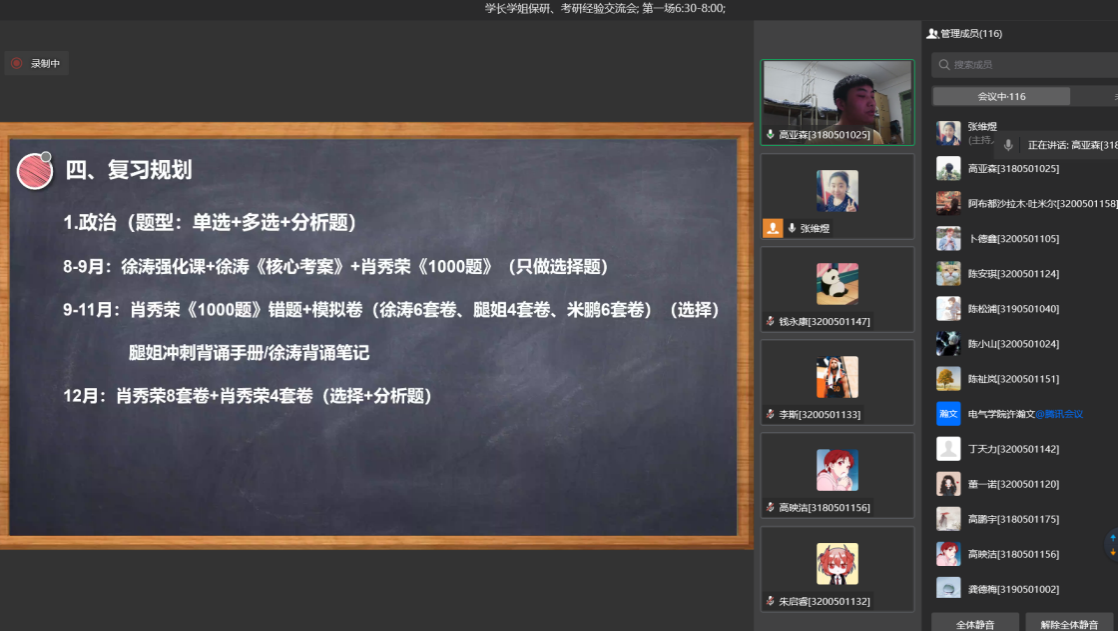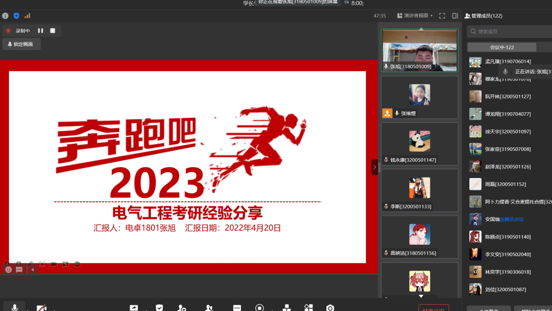 In the sharing link, the outstanding students who have already guaranteed the research actively shared their own learning experience, and carefully explained the specific matters that should be paid attention to in the process of the guaranteed research, including the preparation work before the guaranteed research (how to improve the performance points, how to participate in scientific research and enrich the competition experience), the key time points and general process of the guaranteed research, summer camp preparation, school selection positioning, etc. The outstanding students who have successfully taken the postgraduate entrance examination have shared valuable personal experience in terms of psychological preparation, school and major selection, time arrangement, learning strategies of various subjects, and matters needing attention in the re examination. The Department of Electrical Engineering attaches great importance to the promotion guidance of guaranteed research and postgraduate entrance examination. The successful holding of this guaranteed research experience sharing exchange series conference has created a good learning atmosphere, further played the role of example leading and demonstration, and improved the students' attention to academic goals and life planning.