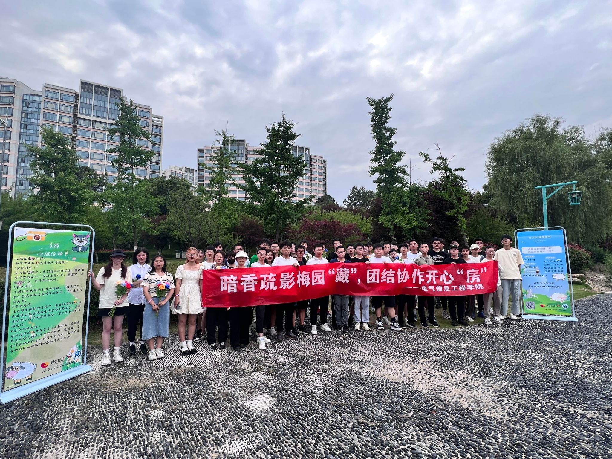 On May 21st, EIE held the 5·25 mental health education and assistance education activities for students with learning difficulties in Meiyuan with the theme of "Hide in the Meiyuan with dark fragrance and sparse shadows, happy 'room' with unity and cooperation". Electrical Engineering Ye Tao, deputy secretary of the party committee of the college, counselor Zhao Tiankui, and mental health association instructor Mo Yangyang attended this event.