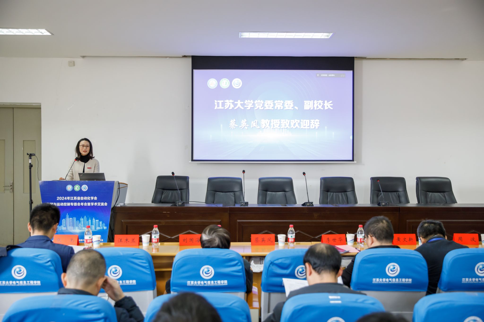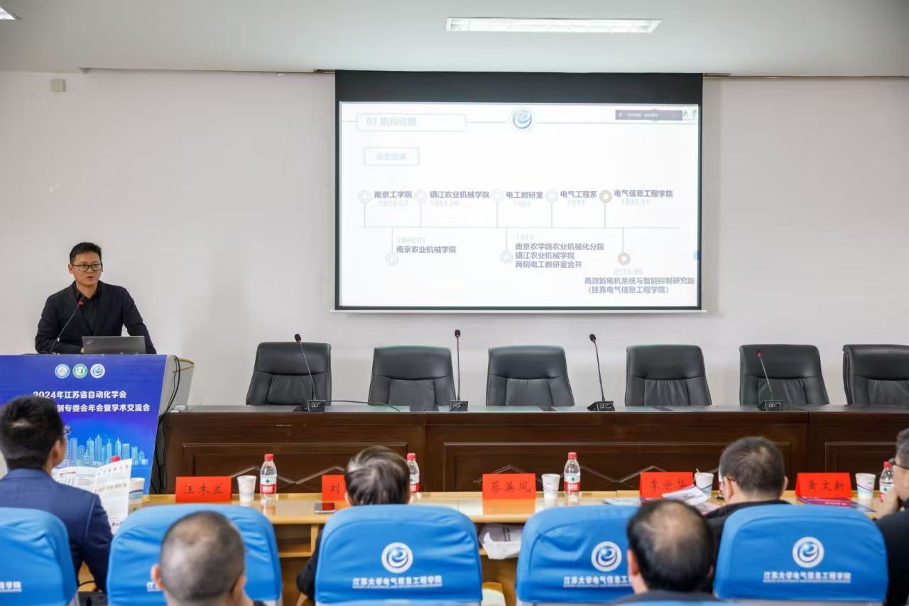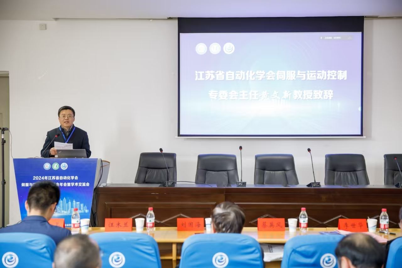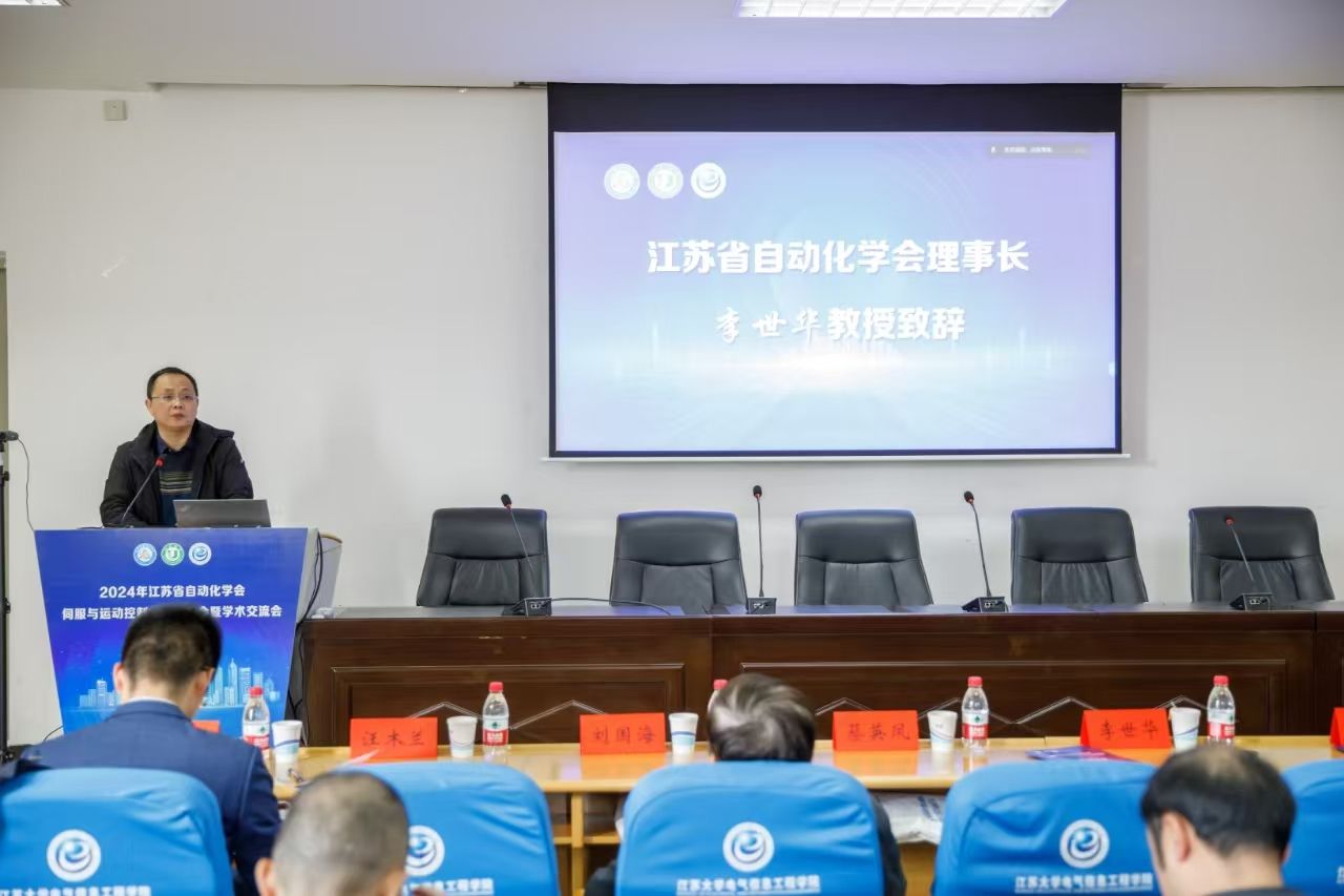 On November 30, the 2024 Annual Meeting and Academic Exchange Meeting of the Servo and Motion Control Committee of Jiangsu Automation Society (hereinafter referred to as the "Committee") was held in the 415 Academic Lecture Hall of the School of Electrical Engineering of Jiangsu University. The meeting was hosted by the Servo and Motion Control Committee of Jiangsu Automation Society and hosted by the School of Electrical Engineering of Jiangsu University. Professor Cai Yingfeng, member of the Standing Committee of the Party Committee and Vice President of our school, attended the opening ceremony. Professor Li Shihua, Chairman of the Jiangsu Automation Society and Vice Dean of the School of Automation of Southeast University, Professor Huang Wenxin, Director of the Committee and Nanjing University of Aeronautics and Astronautics, Professor Liu Guohai of Jiangsu University, Professor Zhou Bo of Southeast University, Deputy Director of the Committee, Dr. Zhang Yu, CTO of Nanjing Estun Automation Co., Ltd., and Professor Ding Shihong, Dean of the School of Electrical Engineering, attended the meeting. The meeting was chaired by Professor Xu Leijun, Vice Dean of the School of Electrical Engineering.