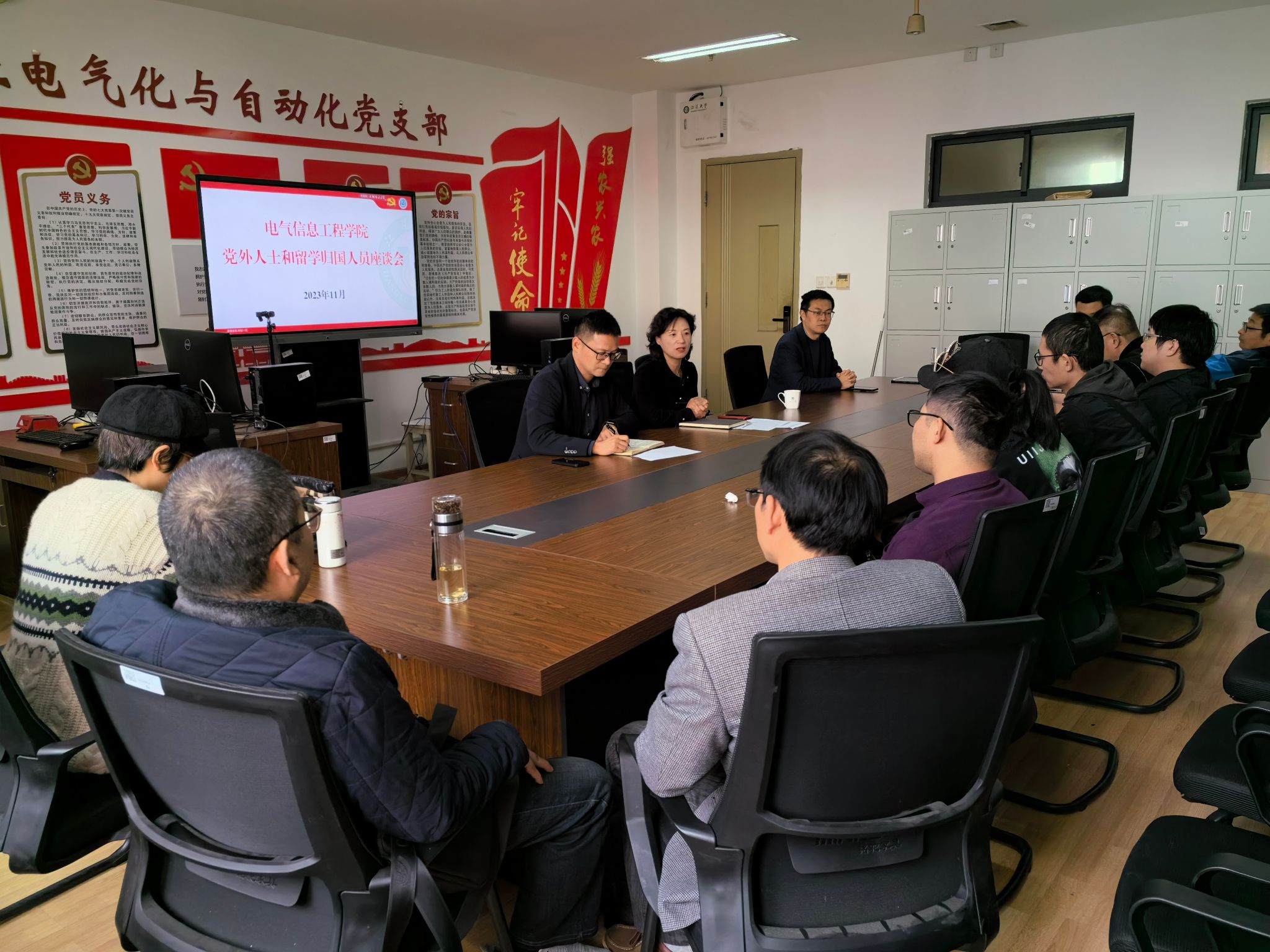 11月22日,电气学院外人士暨留学归国人员代表座谈会在电气楼309召开。电气学院党委书记朱晏、院长丁世宏、党委副书记叶涛、副院长徐雷钧以及十余名民主党派、党外人士教师代表、留学归国教师代表参加,会议由朱晏主持。