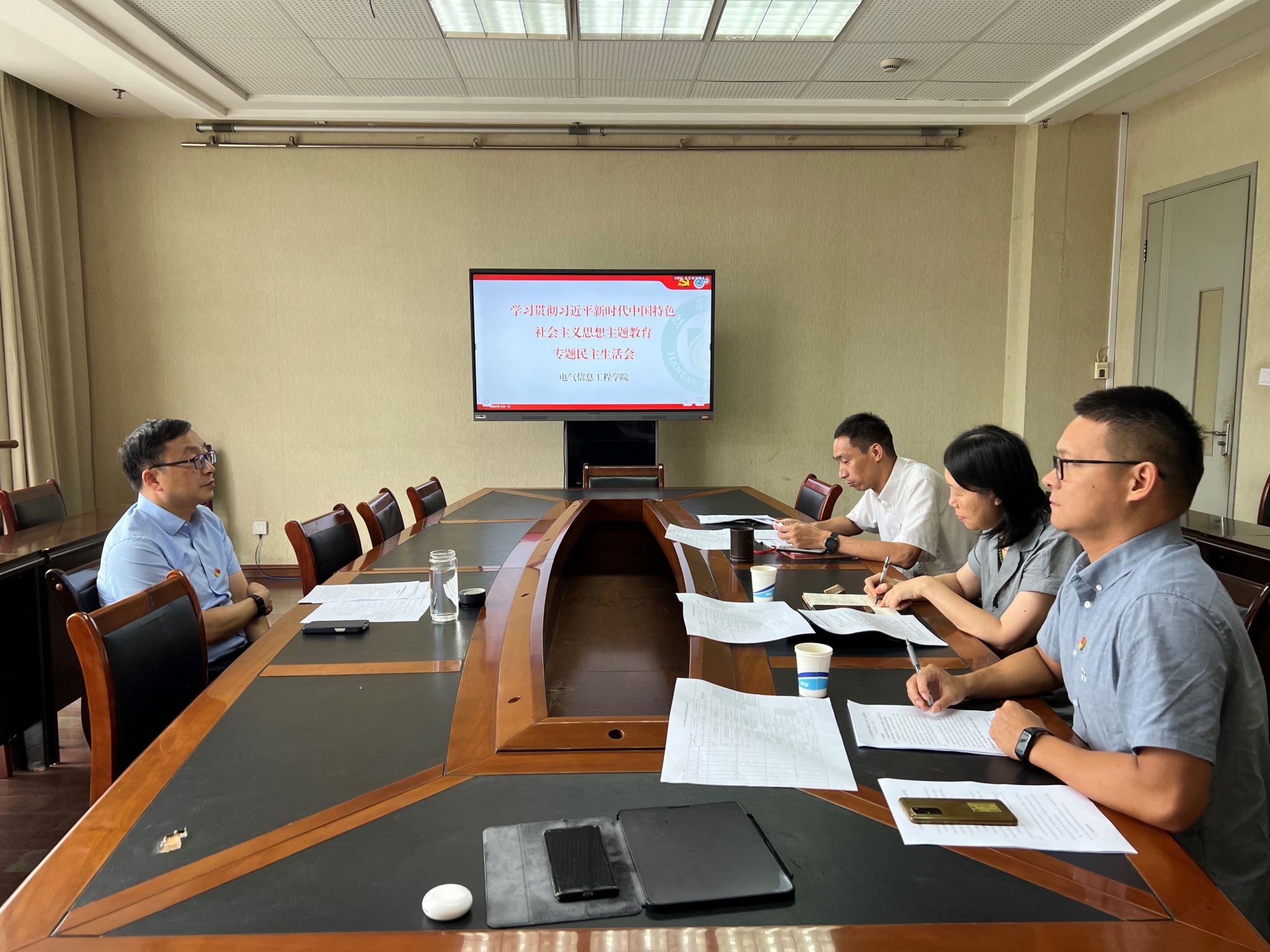 8月29日,电气学院学习贯彻习近平新时代中国特色社会主义思想主题教育专题民主生活会在电气楼313举行,电气学院全体党员处级领导干部参加。会议由电气学院党委副书记叶涛主持。