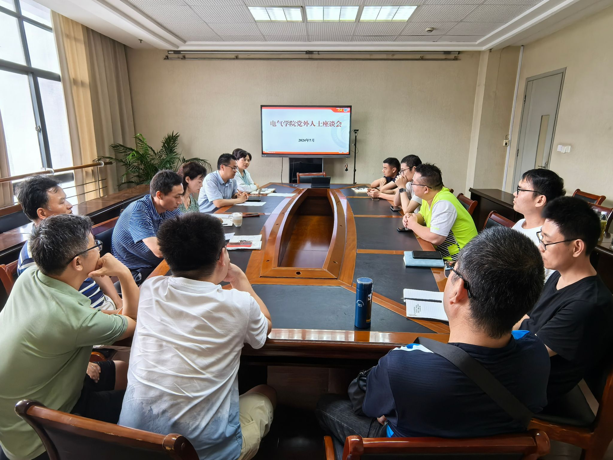 7月3日,电气学院党外人士座谈会在电气楼313召开,电气学院党委书记朱晏、副书记叶涛、副院长徐雷钧、统战委员黄永红以及十余名民主党派、党外人士代表教师参加,座谈会由叶涛主持。