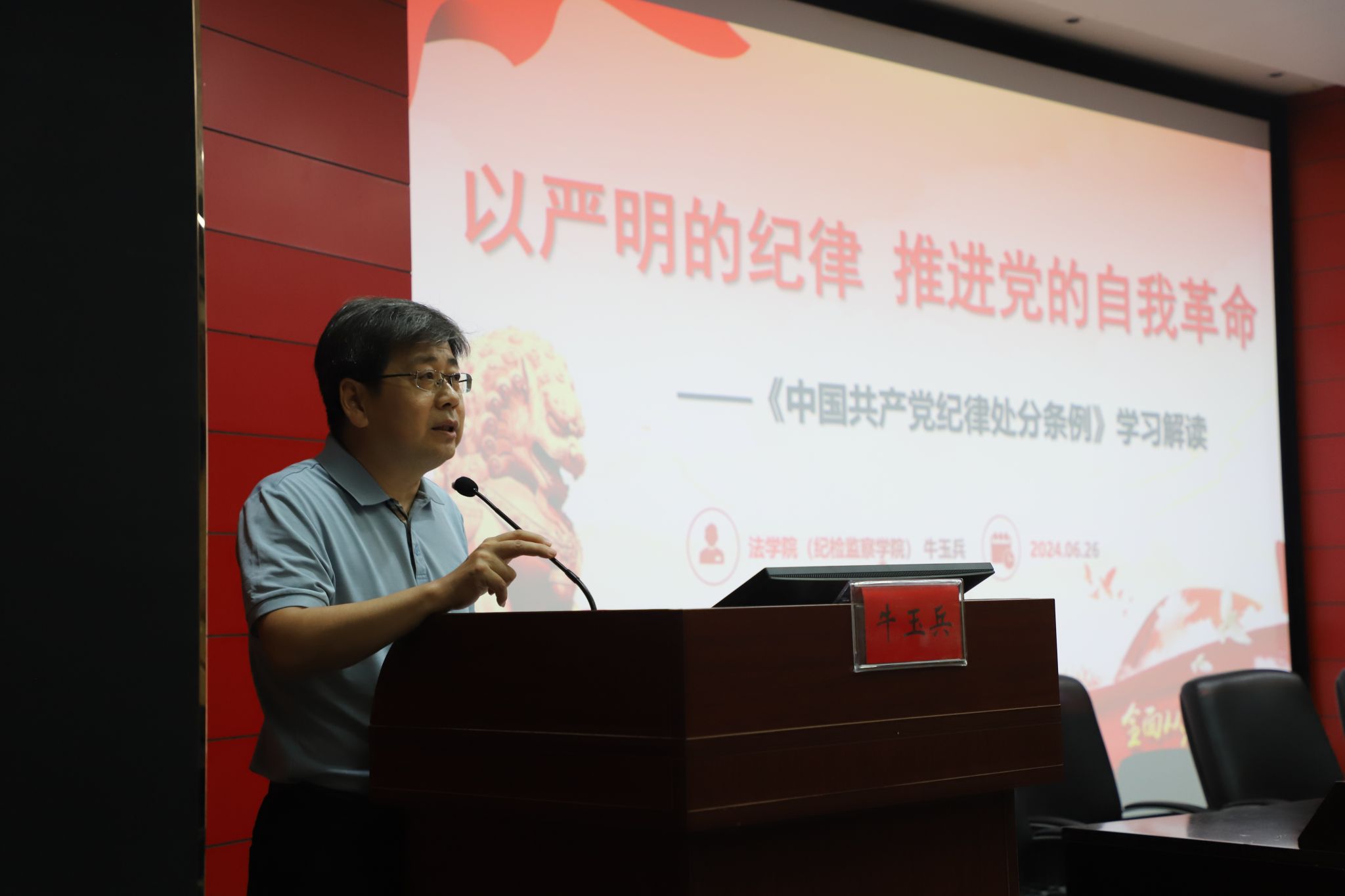 讲座中,牛玉兵围绕“深刻认识修订《条例》的重要意义,准确把握《条例》修订的主旨要义,抓好《条例》的贯彻执行、以严明的纪律推进党的自我革命”三个方面展开阐释,案例丰富详实,语言生动形象,有力引导全院干部、教师进一步提升了全面知纪、对标明纪、笃行守纪的素质和水平,深化了党纪学习教育在增强纪律意识、提高党性修养、筑牢廉洁思想防线过程中的作用。