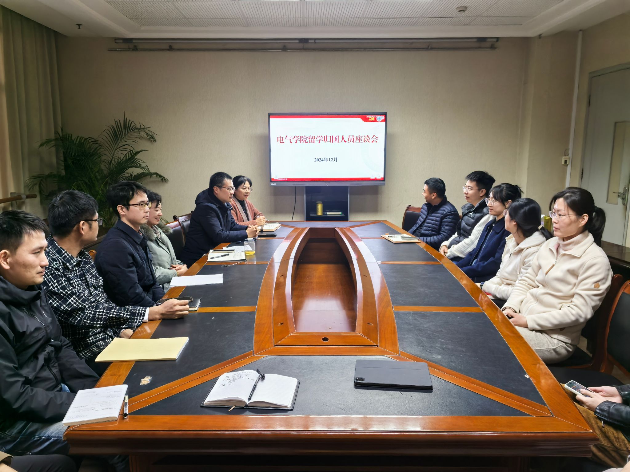 12月11日,电气学院在电气楼313召开留学归国人员座谈会,电气学院党委书记朱晏、副院长徐雷钧、杜怿,十余名留学归国、有海外访学经历的教师参加座谈。会议由朱晏主持。