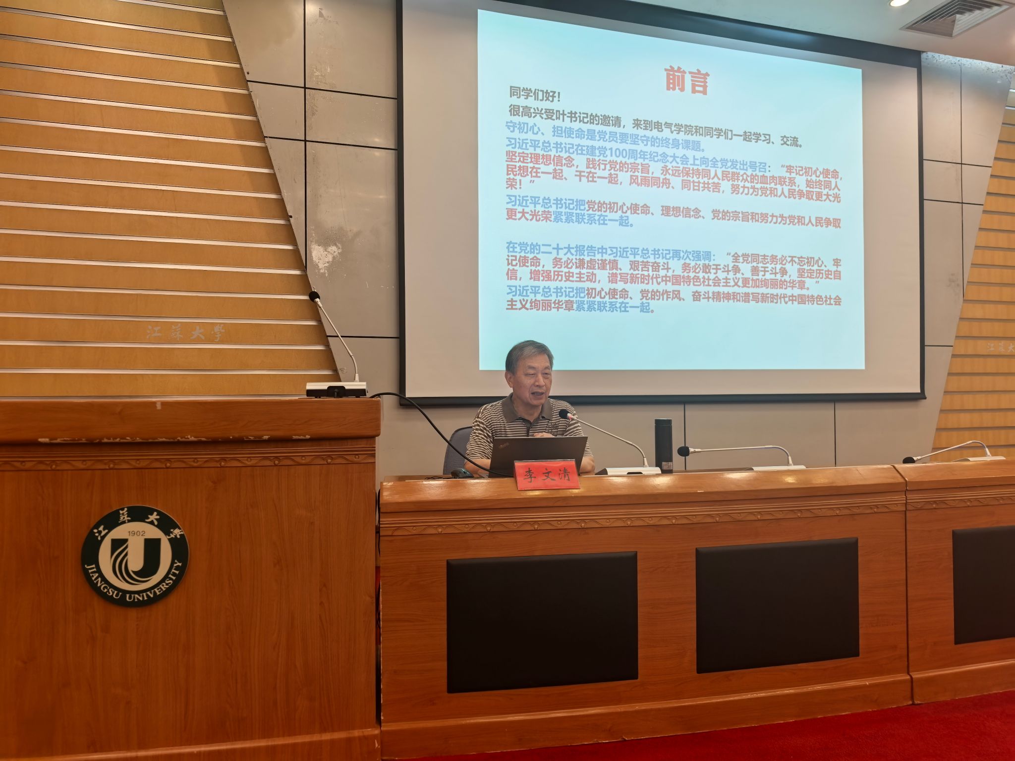 李文清以《不忘初心,牢记使命,做新时代合格共产党员》为主题开讲。他阐释了党的初心使命内涵,回顾了建党历史和先烈事迹。他强调,大学生要筑牢信仰之基、学习党的理论,锤炼过硬本领、担当时代重任,严守党的纪律、永葆政治本色,做到“心中有信仰、肩上有担当、行动有力量”,在实现中华民族伟大复兴中贡献青春力量。