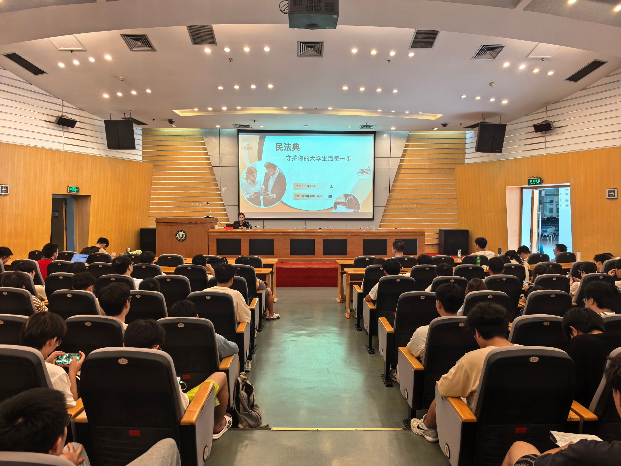 许小燕作了题为《民法典——守护你的大学生活每一步》的专题报告。她聚焦合同编、人格权编、侵权责任编和物权编四个重点,用生动的图文和详实的案例讲述了民法典在大学生活中的各项应用。她指出,法治素养是党员必备素质,同学们要在校园生活中积极践行习近平法治思想和社会主义核心价值观。