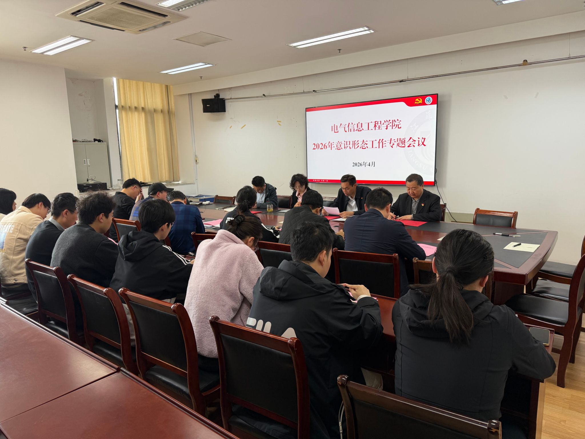 4月15日,电气学院2026年意识形态工作专题会议在电气楼404召开。电气学院全体领导班子、党委委员、党支部书记参加会议。会议由电气学院党委书记朱晏主持。