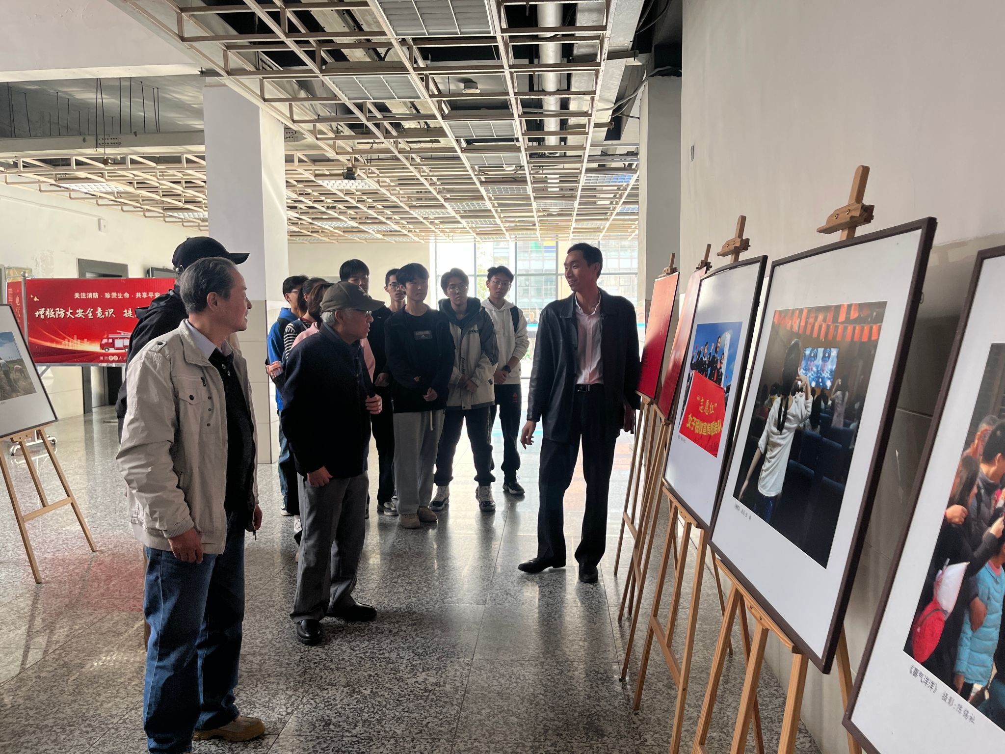 11月24日,电气学院关工委常务副主任叶涛、副主任郎黔山、老教师胡亨华、赵不贿、尤德同及部分23级学生共同参观“新时代颂”2023江苏美术摄影主题联展——起航镇江。