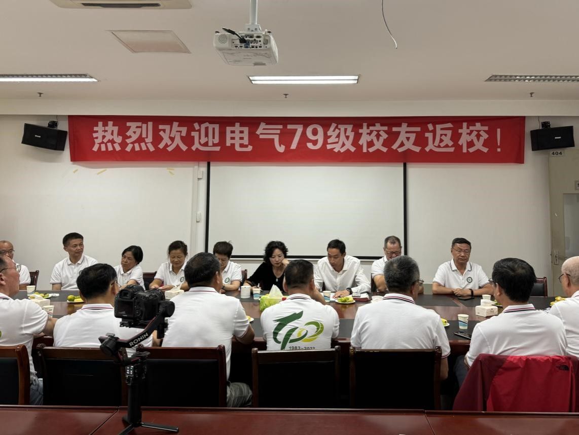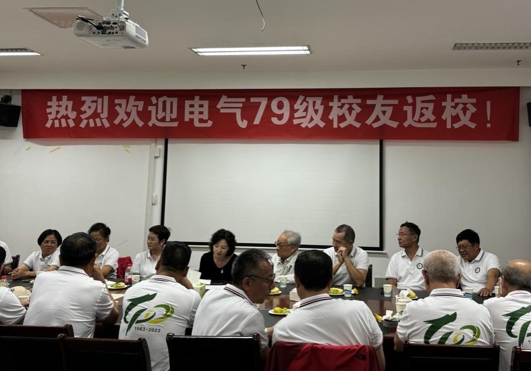 10月5日下午,伟德国际1946bv电气学院电气79级校友返校座谈会在电气楼404会议室举行,40余名79级校友及家属重返母校、相聚电院,院党委书记、关工委主任朱晏,院关工委常务副主任叶涛,电气79级班主任、院关工委副主任郎黔山出席了座谈会。