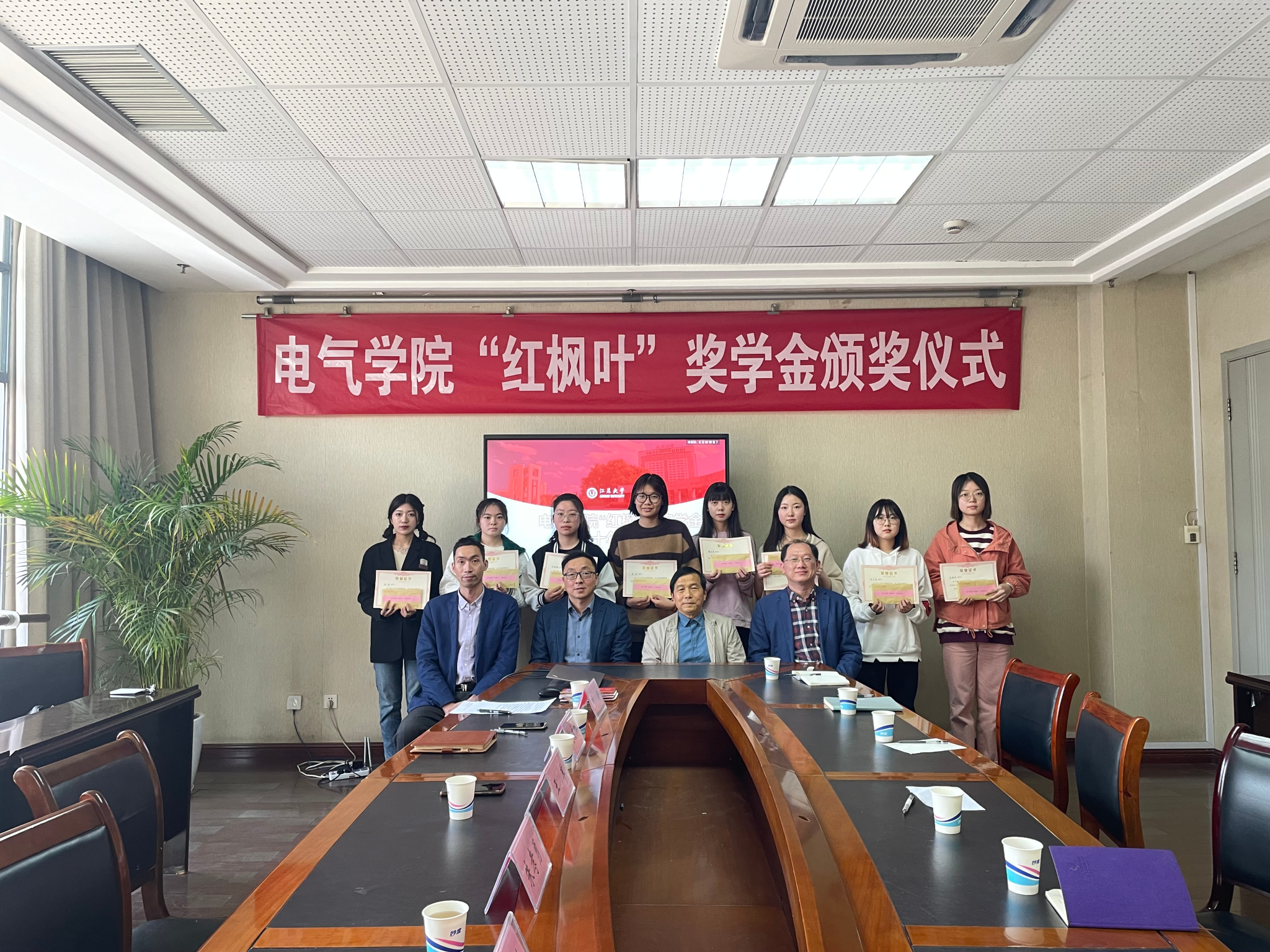 2023年3月10日,电气学院在学院楼313会议室举行第十届“红枫叶”奖学金颁奖仪式。电气学院关工委主任赵文祥、院长朱孝勇教授、“红枫叶”奖学金资助者土力学院王军教授、电气学院关工委副主任叶涛,学院8名获奖女大学生参加颁奖仪式。仪式由叶涛主持。