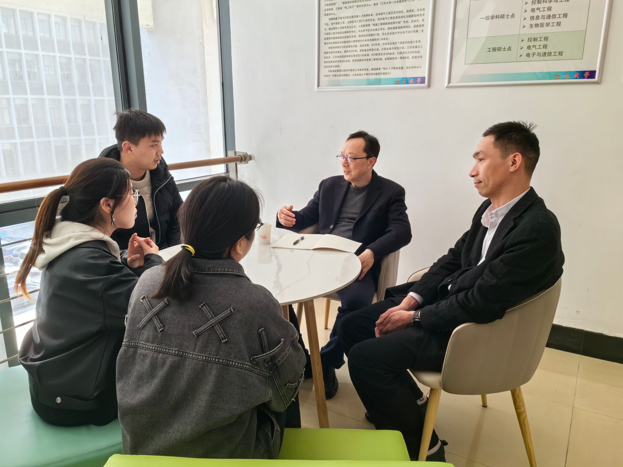3月29日,电气学院关工委副主任邵主任和张洪卫、余翠玲和陈雨佳三位研究生党员进行深入交流,为他们未来职业规划进行指导,提供未来发展建议。