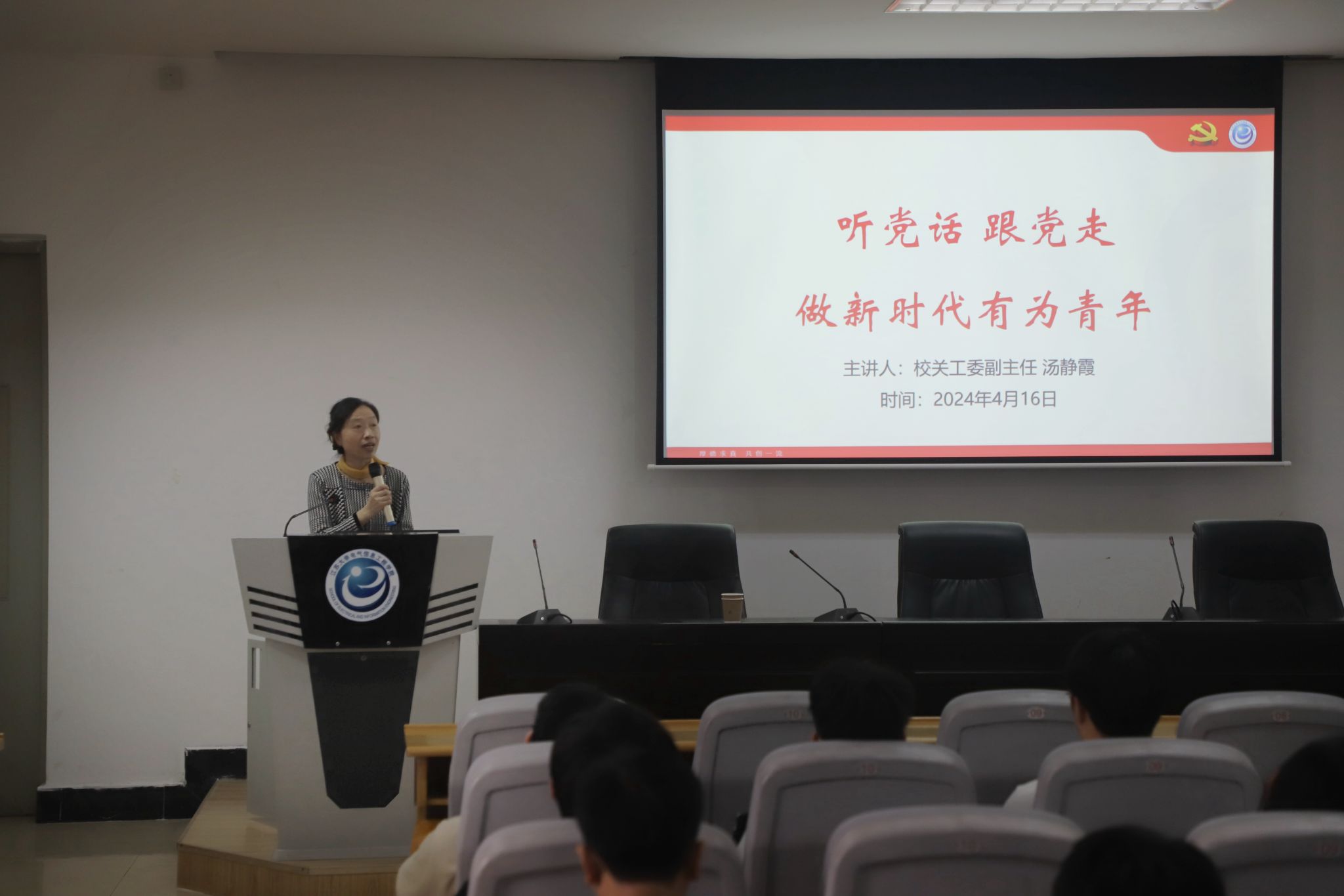 4月16日下午,校关工委副主任汤静霞老师为电气学院的入党积极分子们作了“听党话、跟党走,做新时代有为青年”主题讲座。讲座由电气学院关工委秘书蒋雯倩老师主持。