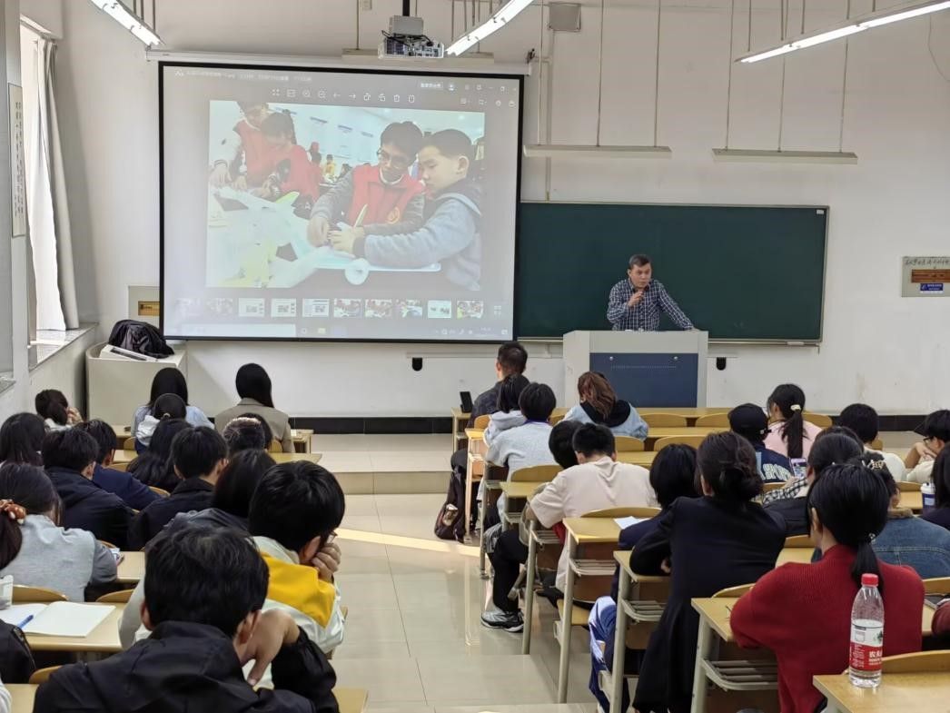 活动伊始,石玉成分享了过往实践活动的摄影经验。他从摄影的构图、曝光等方面,深入浅出地讲解了活动类摄影的构图技巧、光影运用等内容。随后,石玉成从“传统文化注重特色、科普环保常做常新、人文关怀抓好时机”三个方面阐述了活动策划的基本思路,同时通过大量生动的实例图片,让同学们直观地感受到了不同摄影技巧所带来的视觉效果差异。