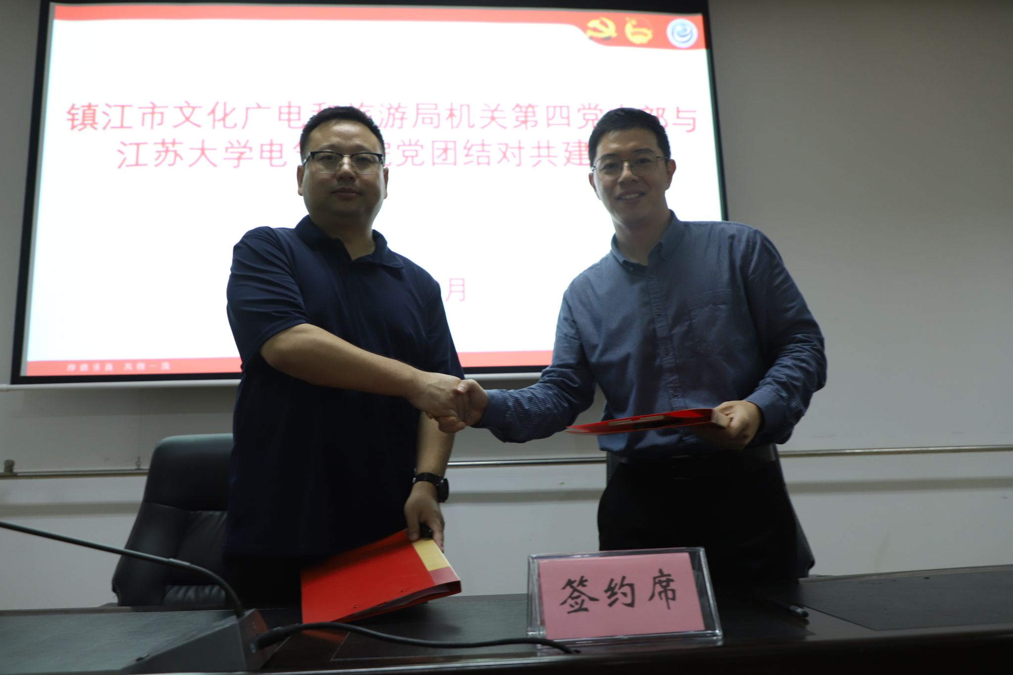 仪式上,叶涛简要介绍学院党建和育人工作的工作举措和成效,希望通过院团委与镇江市文广旅局党组织结对共建,进一步学习宣传贯彻习近平文化思想,深化文化育人,实现资源共享、优势互补、活动联办,助力培养有情怀的卓越工程师。随后,褚亚伦和汤超分别介绍了各自党团组织建设基本情况,签署结对共建协议。最后交流座谈阶段,部分青年学生就出行旅游常识、旅游法律法规等问题进行了提问与交流。