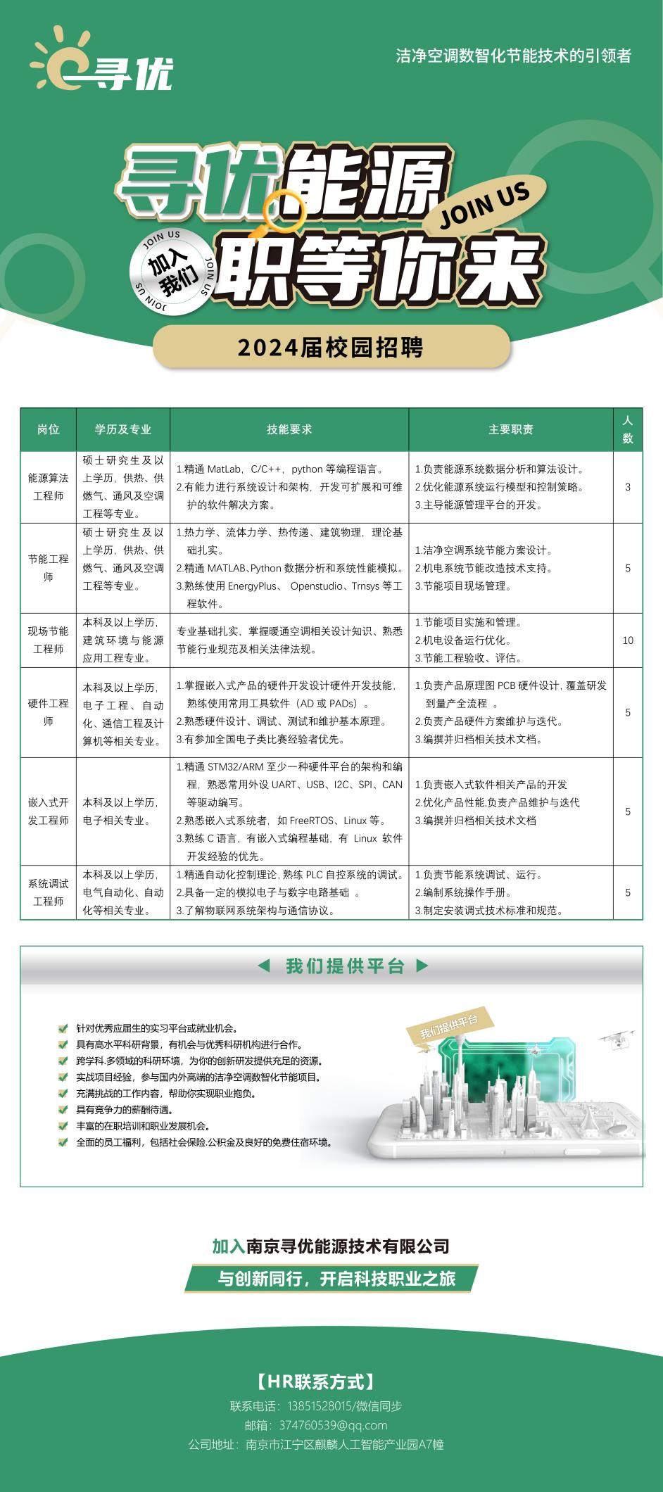 【招聘岗位】:能源算法工程师、节能工程师、现场节能工程师、硬件工程师、嵌入式开发工程师、系统调试工程师