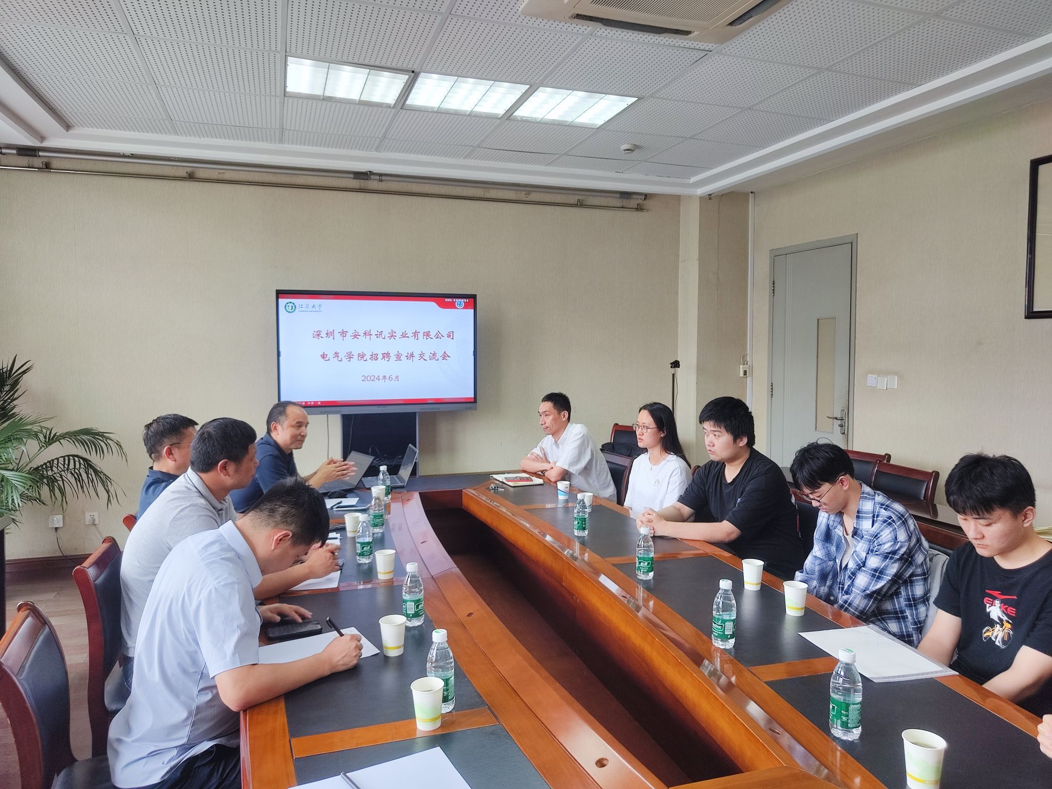 招聘交流会在电气学院的313会议室举行。会上,学院党委副书记叶涛向企业来访表示了热烈欢迎,并简要介绍了学院毕业生的就业情况。安科讯公司的招聘团队为学生们详细介绍了公司的业务范围、企业文化、岗位需求以及发展前景,并分享了公司过去的发展成就和未来的战略规划。在互动环节,学生们纷纷就岗位需求、工作内容、晋升通道等方面向招聘团队提问。招聘人员耐心细致地解答了问题,并鼓励学生们积极自我发展。后续,面试环节分别在2个会议室同时进行,并建群保持进一步联系交流。