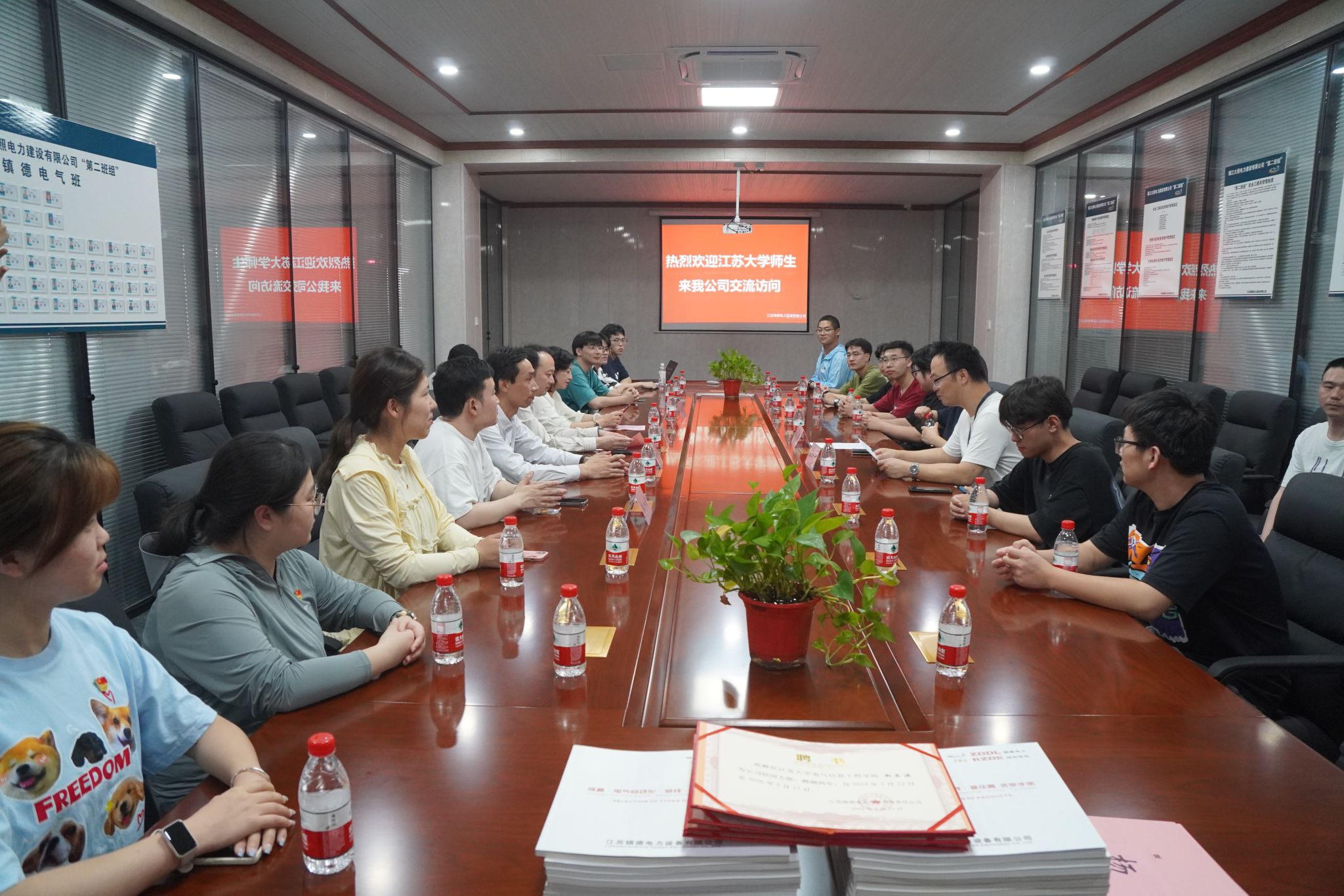 任旭东代表学校对江苏镇德电力、镇江电磁设备厂两家企业的积极支持表示感谢,简要介绍学校和电气学院党建工作和就业育人的举措和成绩,并对今后进一步开展好工作提出了3点要求:一要注重“党建+”链条建设,校企双方要以党建引领产学研合作、教学实习、招聘见习、就业育人等事业高质量发展,形成以党建引领一流人才培养的良好格局;二要注重“融合+”内容设计,学生党员发挥好校园大使的角色功能,引导更多电气专业学生深入共建企业,推动理论与实践结合,明确职业规划;三要注重“就业+”实效体现,学院党委强化统筹,推动行业企业导师进校园、进课堂、进社区,做细学生就业全程服务,提供更多实践机会和就业渠道,助力学生高质量就业。