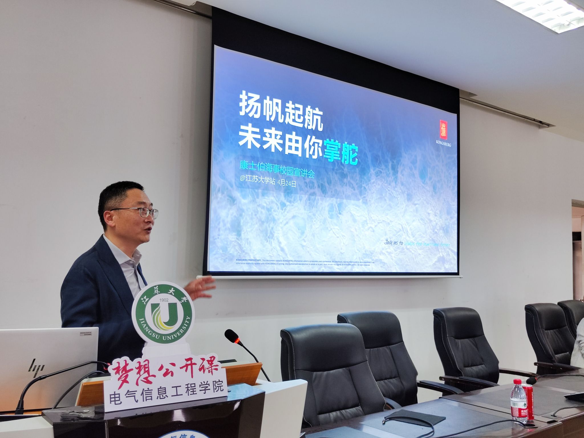 为响应伟德国际1946bv2025年“就业育人”主题教育活动工作号召,开拓毕业生求职就业渠道,4月24日下午,电气学院邀请康士伯海事(中国)上海总部和镇江分公司,在电气楼415举办了就业育人活动暨宣讲会,康士伯海事中国副总经理、全球客户支持亚太区高级副总裁高军,康士伯海事中国业务支持总监沈嵘凡等嘉宾到场出席,学院党委副书记、副院长叶涛,电气系主任黄永红以及就业联络员王媛媛等陪同接待。