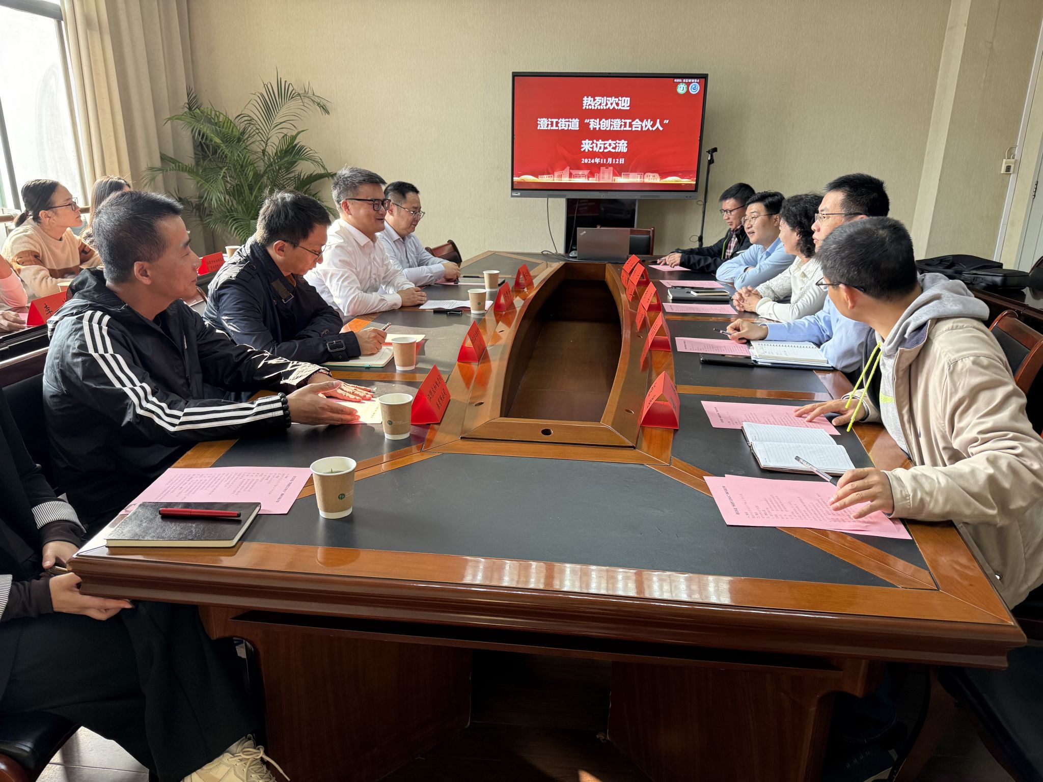 朱晏对无锡江阴市澄江街道“科创澄江合伙人”一行的到来表示热烈欢迎,并介绍了学院的机构设置、师资队伍、学科专业和人才培养等基本情况。徐雷钧介绍了学院科研平台、成果和特色研究方向。杨宁分享了与澄江企业共研共建转化科研成果的成功经验。