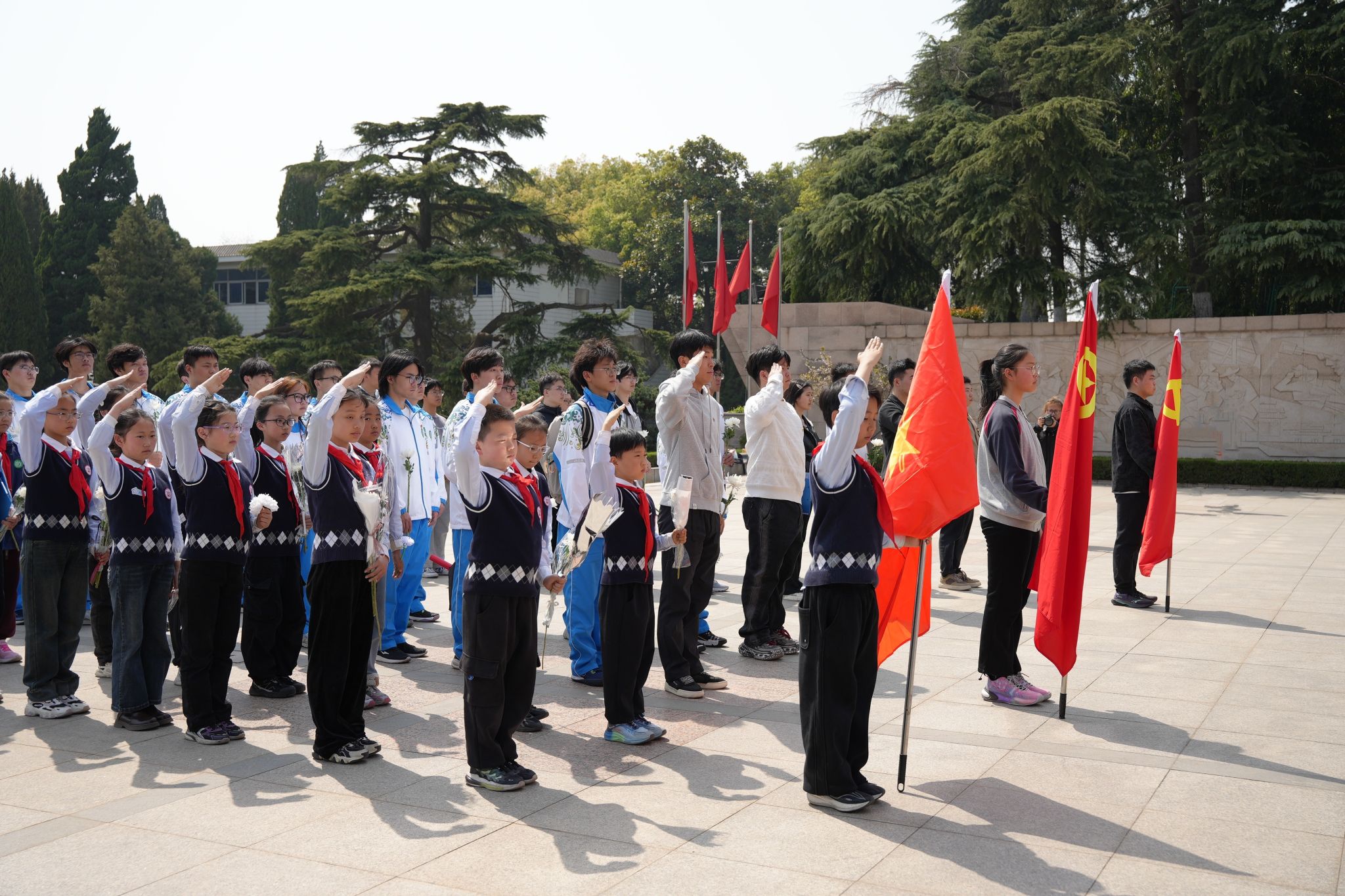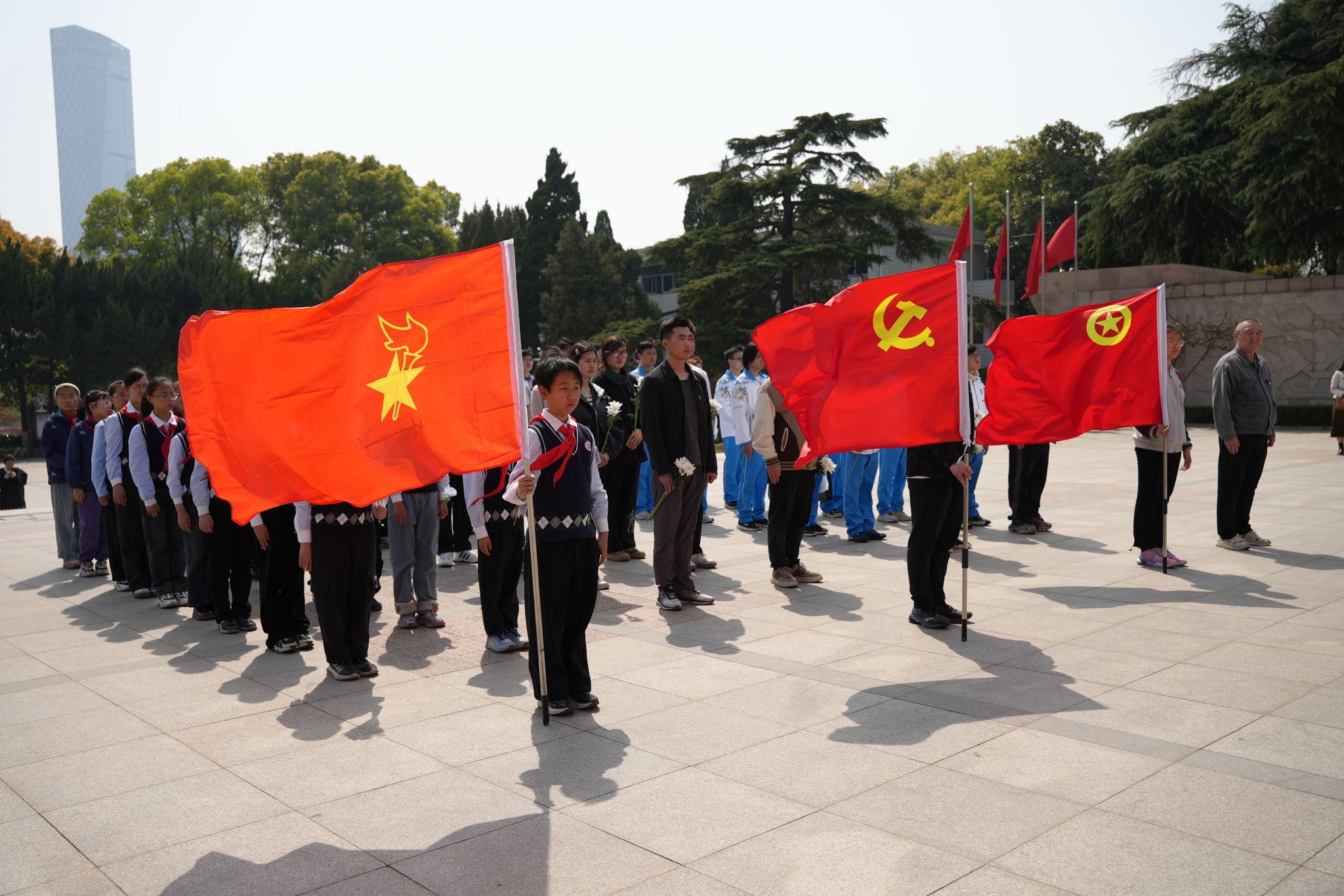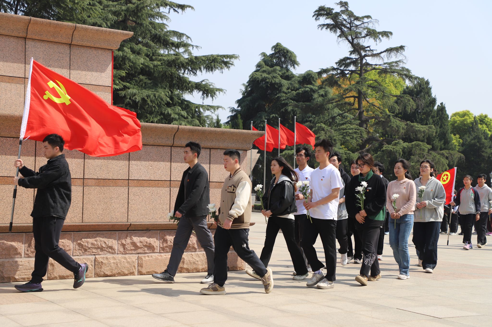 活动伊始,全体人员在纪念碑前肃立,少先队员敬队礼、退伍学生敬军礼。由大中小学生代表、教师代表、少数民族学生和退役复学士兵代表分别上前敬献花圈,随后所有人低头默哀一分钟。电气学院学生第一党支部书记郭宇辰致悼词,他呼吁全体师生铭记历史,珍惜当下,以实际行动践行先烈们的遗志。“站在这片土地,仿佛能听见历史的回响,长江奔涌,北固山巍峨,英雄的故事从未远去……”在诗朗诵《山河的回响》中,来自不同学段的学生用真挚的情感、饱满的声音,将对先烈的追思与敬意融入诗句,重现那段烽火岁月。随后,师生们在党旗、团旗、队旗的引领下,绕烈士纪念碑一圈,走到墓碑前依次献花瞻仰、清理碑面灰尘。最后,师生们有序参观镇江烈士纪念馆,珍贵史料、英烈遗物诉说往昔,进一步夯实思政教育效果。