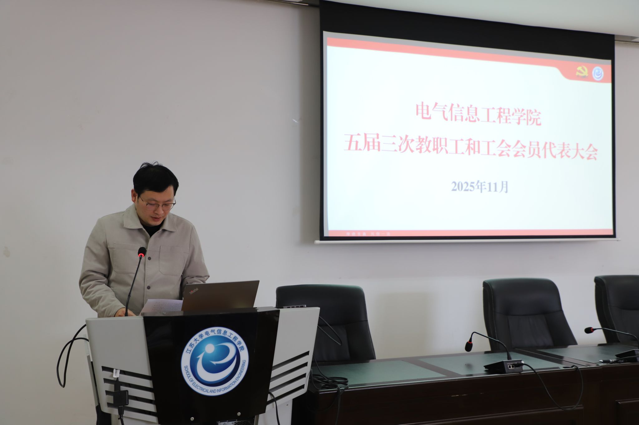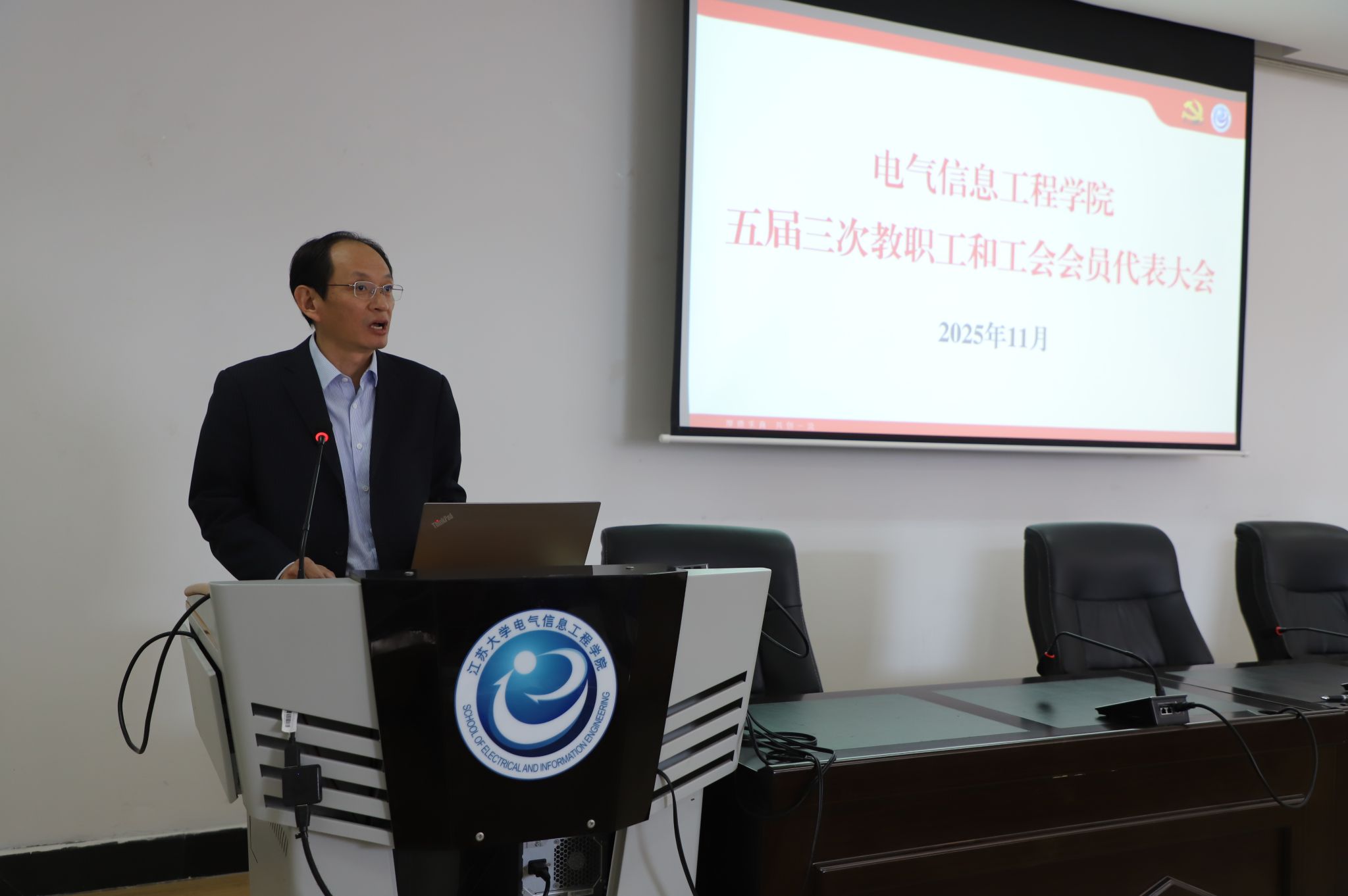 11月5日,电气学院五届三次教职工和工会会员代表大会在电气楼415召开,学院全体领导班子成员、两代会代表参加大会,校工会常务副主席王善民应邀出席。大会由电气学院党委书记朱晏主持。
