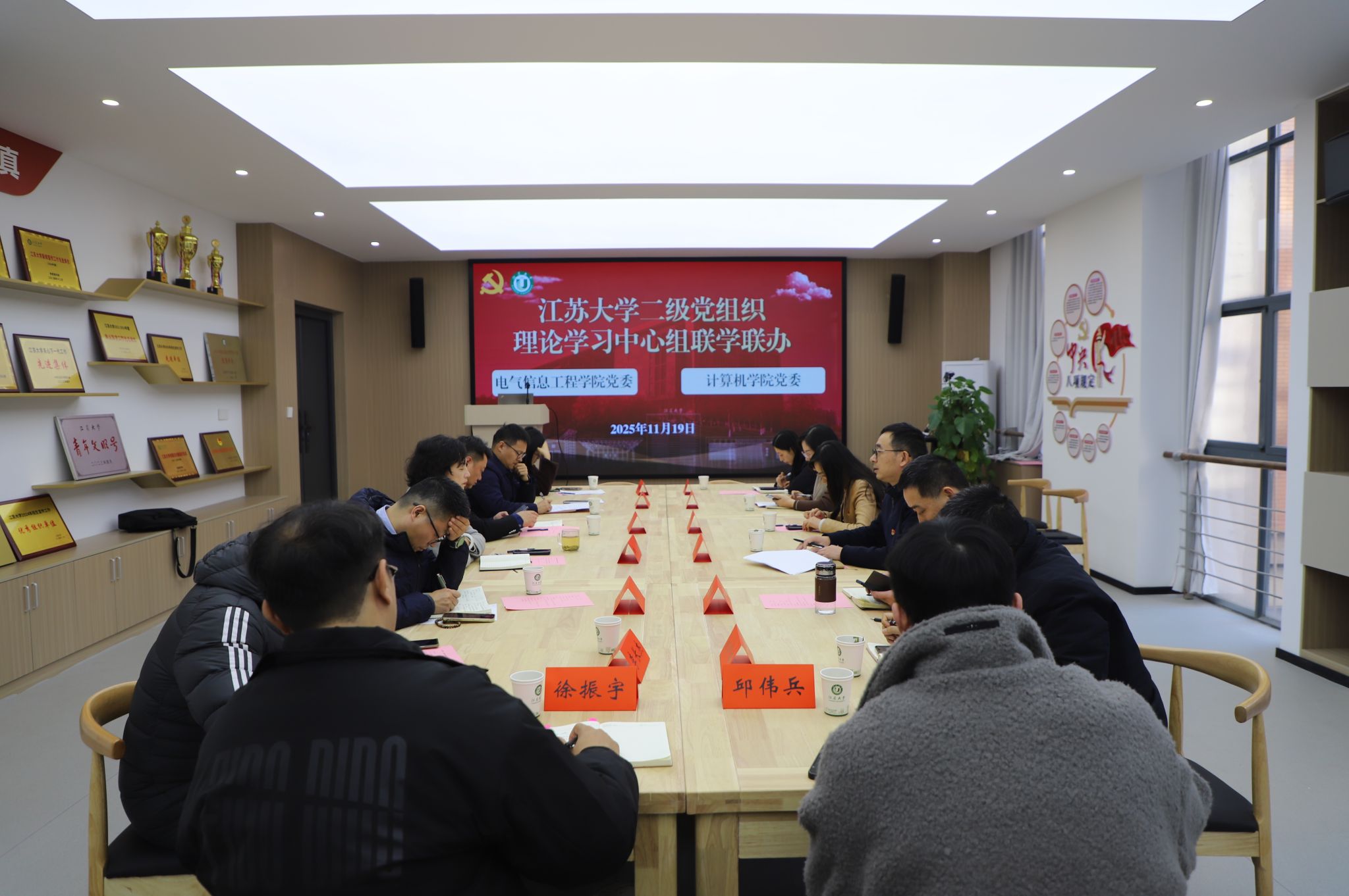 11月19日下午,电气学院党委、计算机学院党委理论学习中心组联学联办在电气楼333开展。两院全体理论学习中心组成员参加,校巡学旁听组成员到场指导,电气学院党委书记朱晏主持学习。