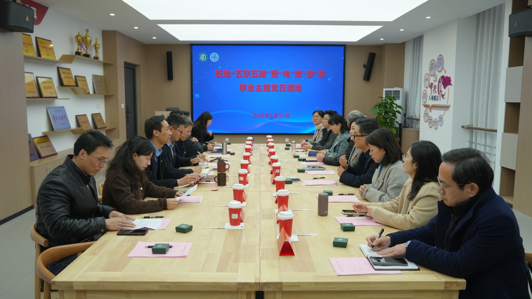 主题党日环节,镇江市物联网产业科技镇长团团员左欣带领大家集体学习习近平总书记2026年新年贺词的内容,京口区委党校青年教师严子岚作《理润幸福学府路》微宣讲;京口区委宣传部常务副部长巫长龙讲授了微党课《加快构建“五联五建”模式 探索校地宣传思想文化新路》,系统阐述了校地合作在宣传思想文化领域的创新探索与实践成果,为深化校地协同提供了理论支撑和实践指引。与会党员围绕如何发挥各自优势、推动“五联五建”机制走深走实进行互动交流,一致认为要持续加强校地联动,打造校地党建共建的示范标杆。