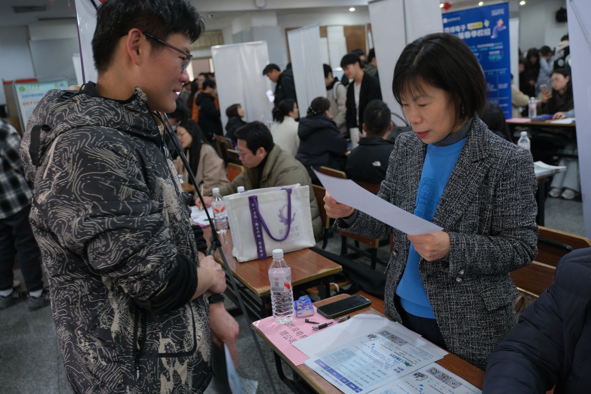 本次招聘会共吸引千余名毕业生参与,其中不乏众多海外学子。同学们充分利用本次就业契机,积极展现自身专业优势与综合素养,与企业深度对接、主动争取机会。我院2026届毕业生张同学在接受采访时表示:“本来还担心就业形势严峻,结果来了发现这次有很多行业优质企业来招聘,还有5家企业给我当场面试,让我对就业更有信心了。”海内外学子的积极参与、自信求职,充分彰显了我院学子昂扬向上的良好风貌。