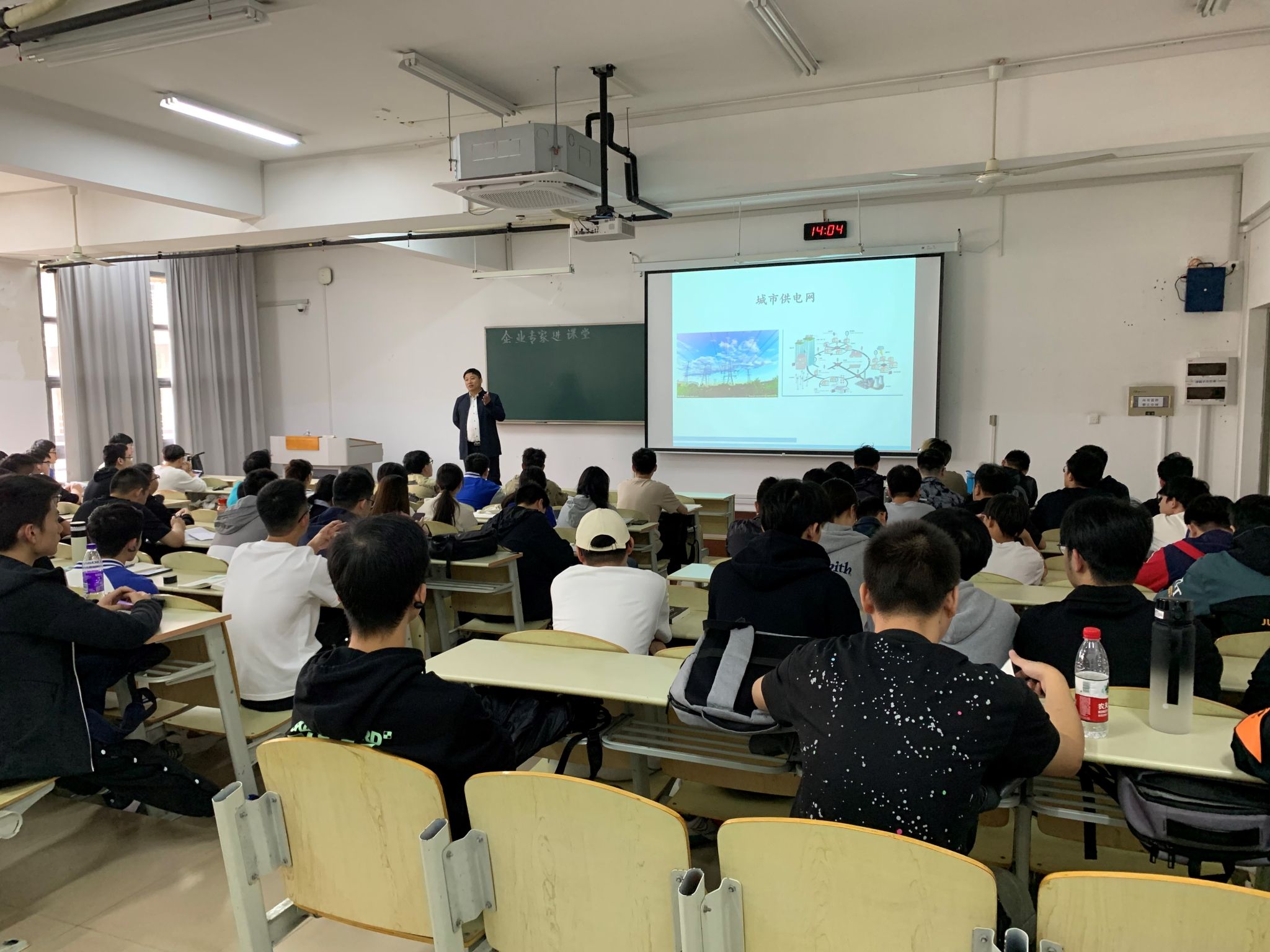 2023年10月9日,江苏省产业教授、省产教融合型品牌专业校外专家——江苏镇安电力设备有限公司副总经理黄红生高工受邀到电气工程及其自动化专业《电气工程新技术讲座》课堂,为师生讲授“城市供电网”课程内容。120多名学生到课聆听了专家的讲座。黄红生高工主要从城市电网组成和布置形式,城市电网的供电电源和电网电压等级选取等方面,通过给同学们介绍具体的案例,让大家对所学电力系统相关知识的应用有了更深刻的认识。