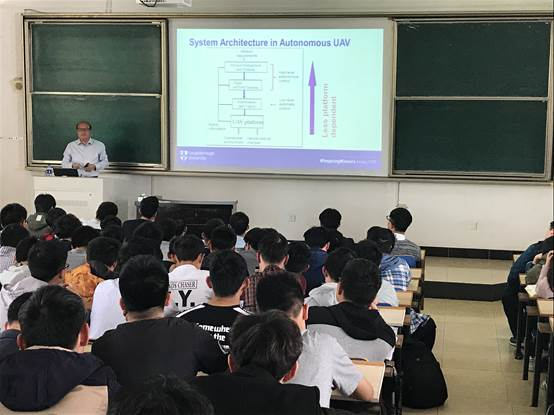 本次讲课内容以“无人机的发展和应用”为主题,陈教授结合自身科研工作情况,讲解了智能控制和无人机这两大发展方向,并从工程经验的角度阐述了无人机的诸多应用场合和抗干扰控制系统设计步骤,从军用、电力巡检、城市管理等领域说明了其应用价值。在最后的互动环节,同学们结合自身学习情况积极提问,陈教授进行了详细的解答。