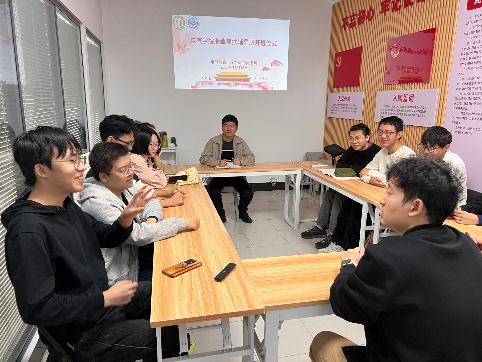 11月14日,电气学院在钟灵书院举办了朋辈帮扶辅导班开班仪式,电气学院辅导员郭宇辰、莫杨杨,钟灵书院张东阳以及本研朋辈小导师和学业困难学生参与此次会议。