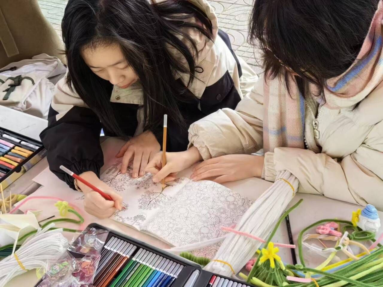 活动以“接纳自我,立牌启思”拉开序幕,通过MBTI测试游戏,让同学们了解自己的心理状况,并领取相应的人格立牌。同学们积极参与,在工作人员的引导下,完成测试后认真阅读自己的人格简介,对自身有了更深入的认识。在“创意工坊,心向阳光”环节,设置了扭扭棒和曼陀罗绘画两个手工小游戏,同学们沉浸其中,动手弯折扭扭棒、绘制曼陀罗图案,在创作过程中忘却了外界的压力和烦恼,感受到了身心的放松。而“镜画心声,悦纳你我”环节则是通过两人一组面对面画人像的方式,为同学提供了一种全新的情感抒发渠道,绘画过程中,同学们不仅能够表达自己内心的想法与情感体验,还能在交流互动中增强情感表达与沟通能力。活动现场,同学们积极参与,热情高涨,时而沉思,时而欢笑,时而热烈讨论,充满了温馨与和谐。在这样的氛围中,同学们不仅缓解了负面情绪,更在心灵深处得到了滋养与成长。