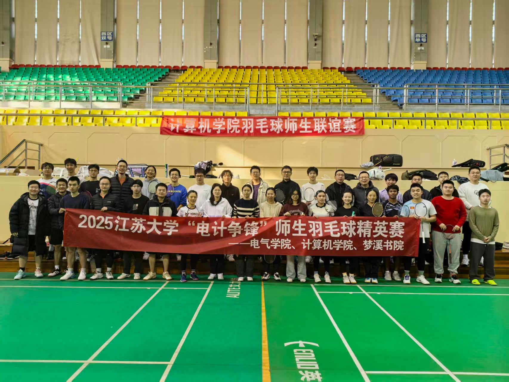 2025年11月24日上午,伟德国际1946bv体育馆二楼羽毛球馆内人声鼎沸、活力四溢,由电气学院与计算机学院联合主办、梦溪书院协办的“电计争锋”师生羽毛球精英赛在此激情开赛。本次赛事旨在搭建师生交流平台,以球会友、以赛促融,吸引了两个学院百余名师生踊跃参与,共同演绎了一场精彩纷呈的体育盛宴。