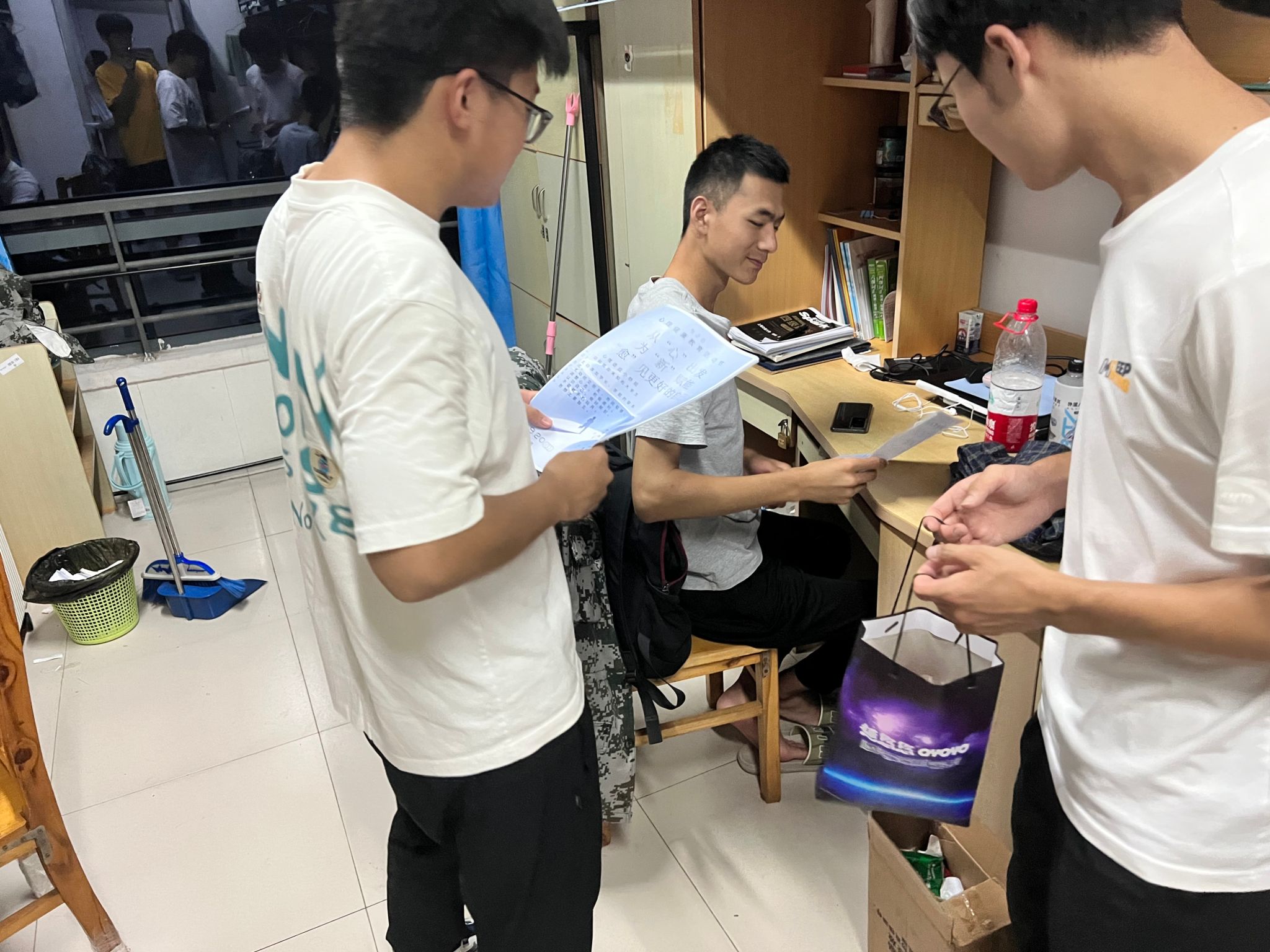 本次活动以宿舍走访面对面宣传普及心理健康知识以及盲盒抽奖的形式展开。活动开始,部长们通过小游戏进行破冰,打破与新生的沟通僵局,熟悉之后向新生宣传普及海报上的心理健康小常识。随后,参与学生从盲盒中抽取明信片,每张明信片上各有一条心理调试小妙招,且下方附有二维码,参与者通过扫码可获得更加丰富的新生适应攻略以及部长们提前准备的精美礼品。最后,部长们向新生介绍心理求助资源,引导他们在遇到问题时及时有效的进行求助。活动内容丰富且趣味十足,新生在交流互动中知晓了心理健康知识,解答了学习生活方面的困惑。