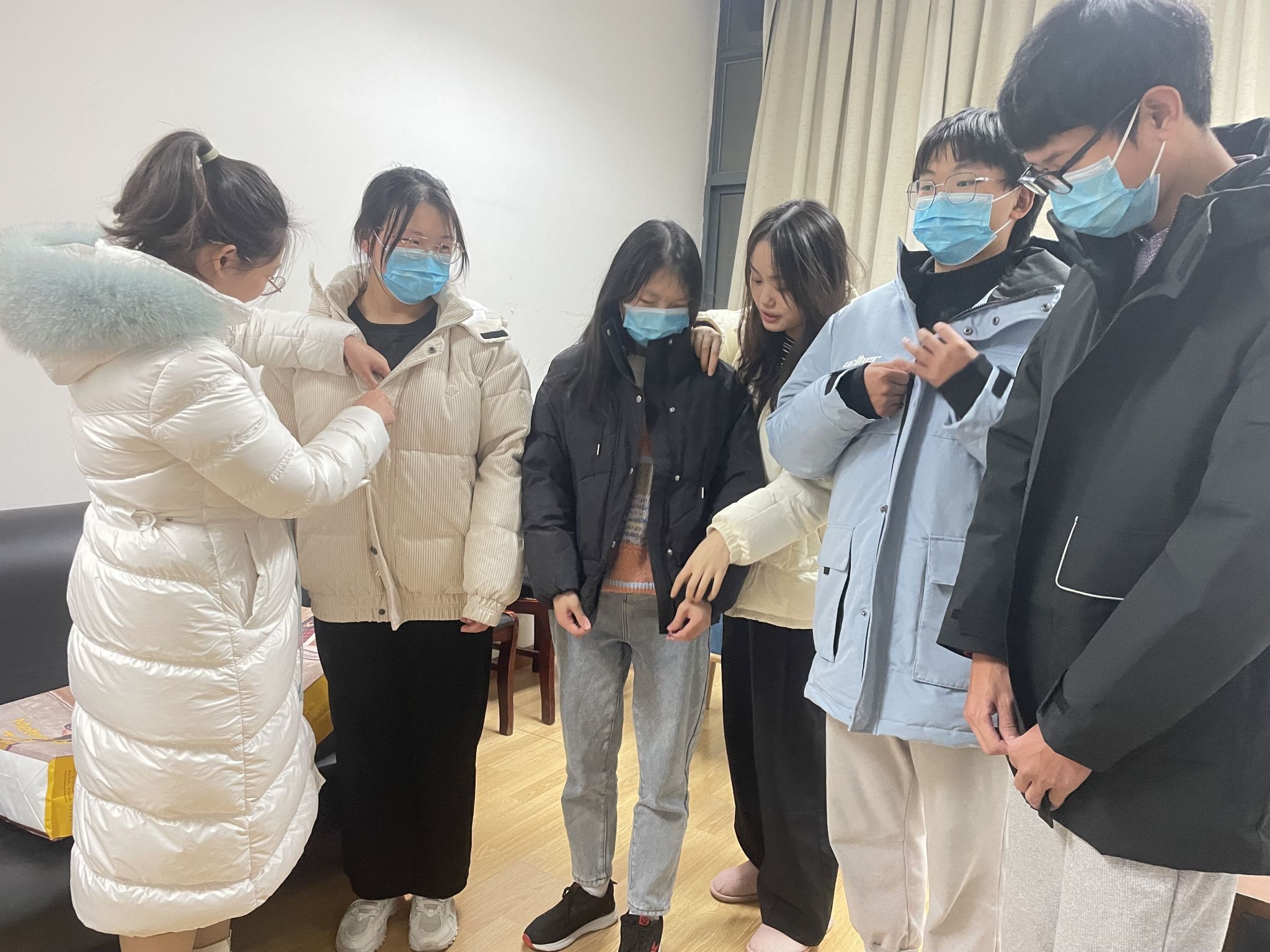 棉服穿在身,温暖记在心。希望受助学生珍惜国家和学校的关爱,在校安心学习,自强不息,感恩社会。